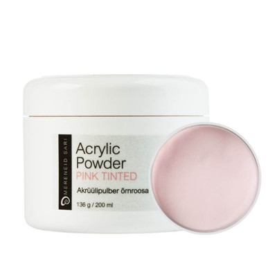 Pink tinted acrylic powder. Fast-hardening, easy-to-use, creamy powder for acrylic nail extensions.