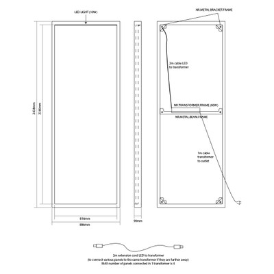Equipped with a 10W LED lighting system, transformer, and a full wall mounting kit.