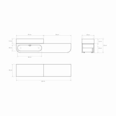 Drawer: H 20 × W 80 × D 30 cm (capacity: 35 kg)