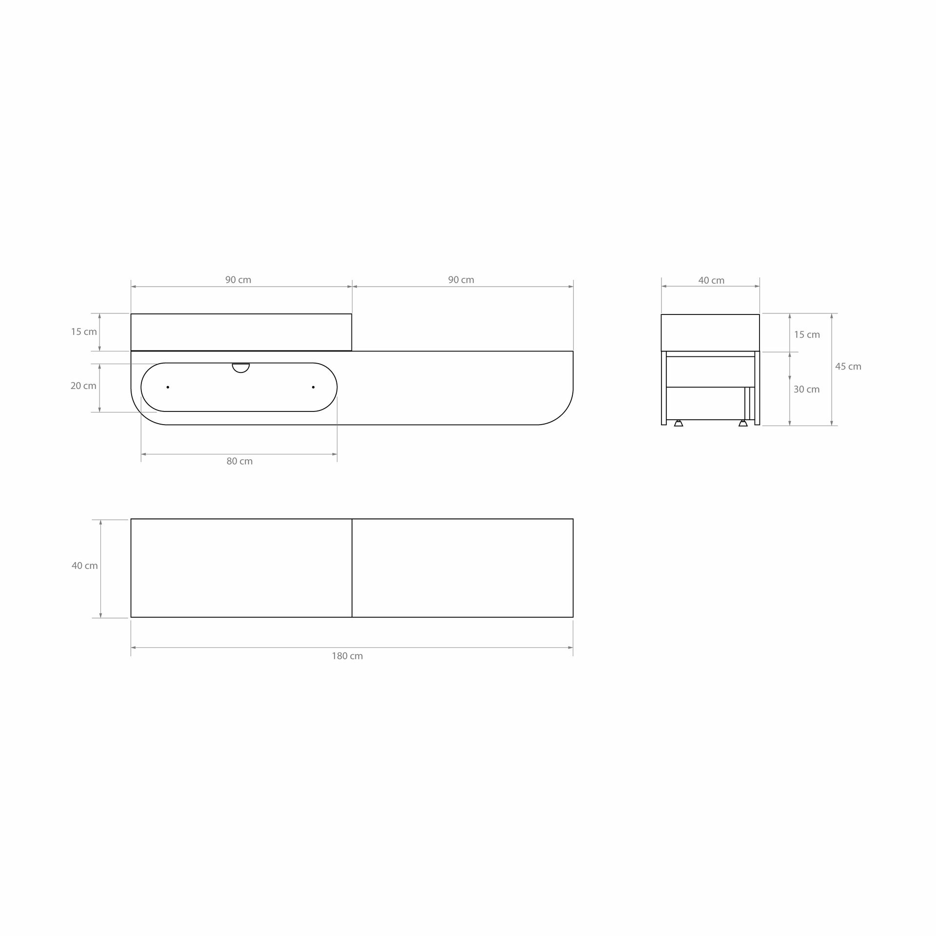 Transform the Large Base from Naggura Rooms into an elegant waiting bench, perfect for providing clients with a comfortable and functional seating solution. The spacious surface is practical for placing magazines, lighting, water, or personal belongings, making it a versatile addition to any professional space.