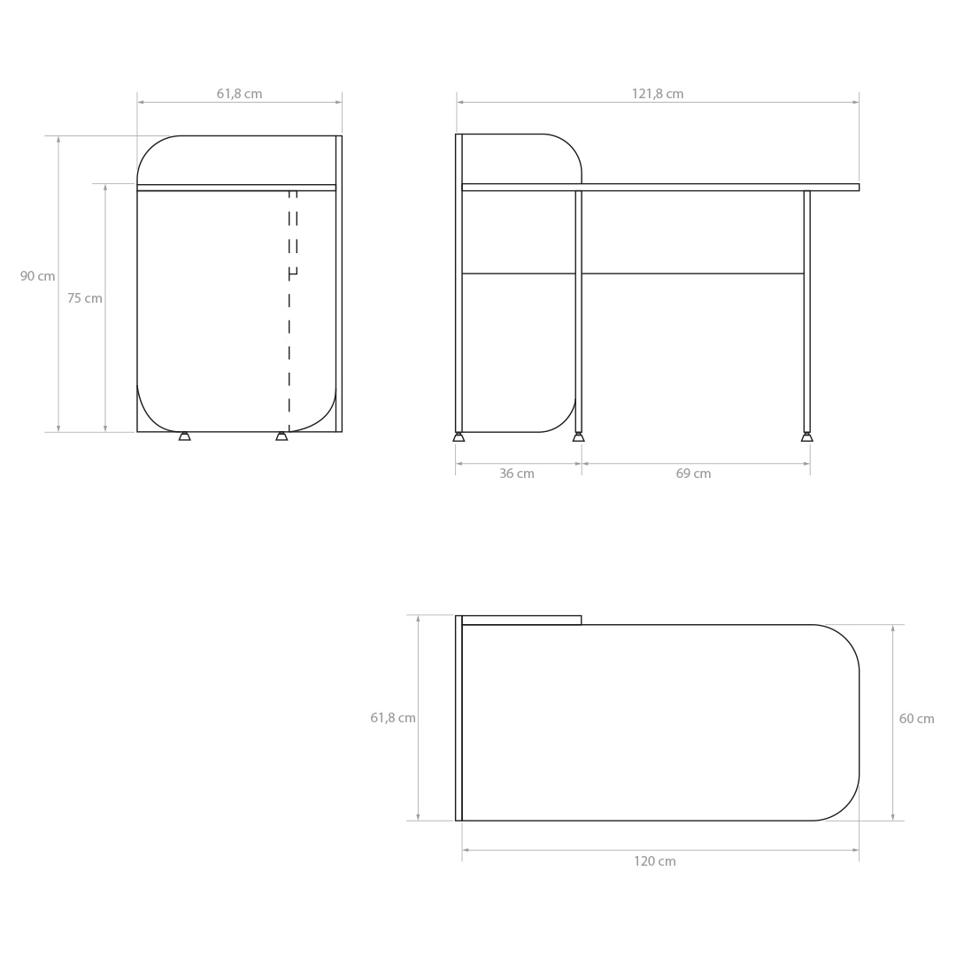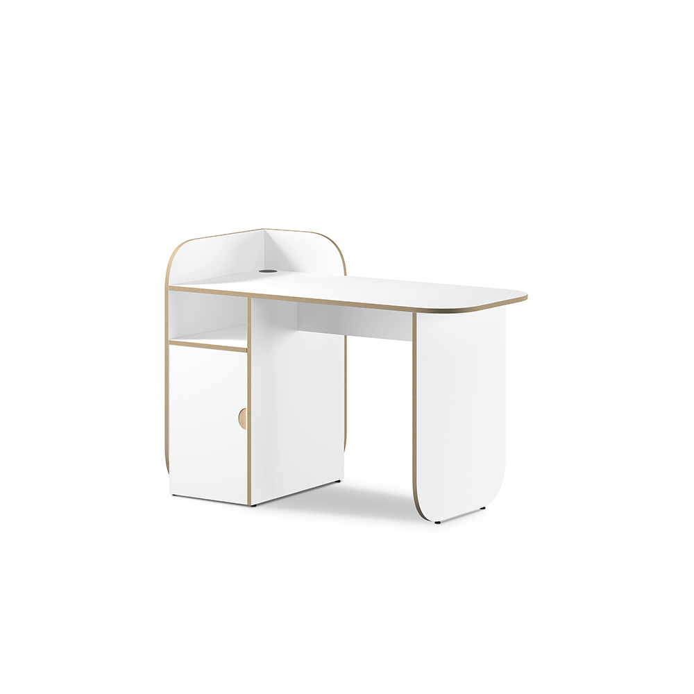Made of high-quality plywood and finished with technical melamine, the desk also has water-sealed edges that protect it against moisture and ensure long-lasting durability.