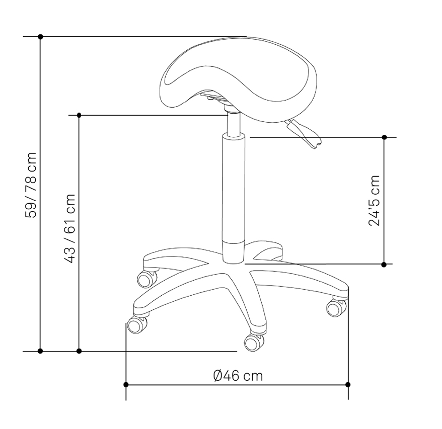 Ergonomically designed saddle chair, equipped with three (3) levers to adjust the height, backrest or seat tilt. This is a chair that promotes proper posture during long working days. Durable chrome base. The NAGGURA saddle chair is ideal for professional environments and public spaces such as pharmacies, beauty salons, clinics or salons.