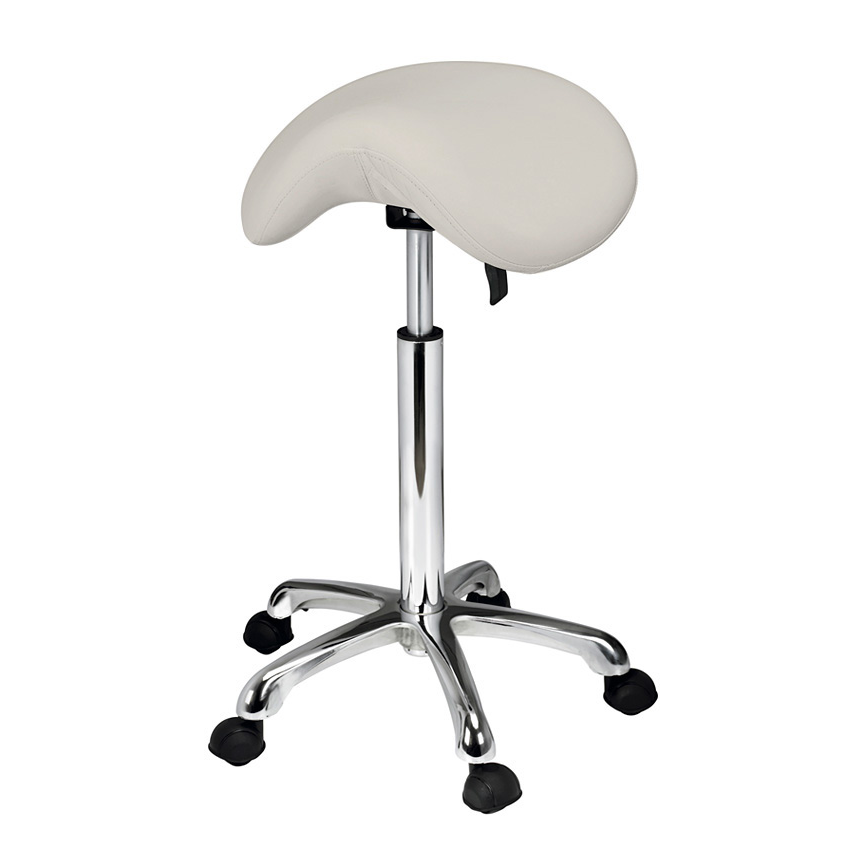 Ergonomically designed saddle chair, equipped with three (3) levers to adjust the height, backrest or seat tilt. This is a chair that promotes proper posture during long working days. Durable chrome base. The NAGGURA saddle chair is ideal for professional environments and public spaces such as pharmacies, beauty salons, clinics or salons.