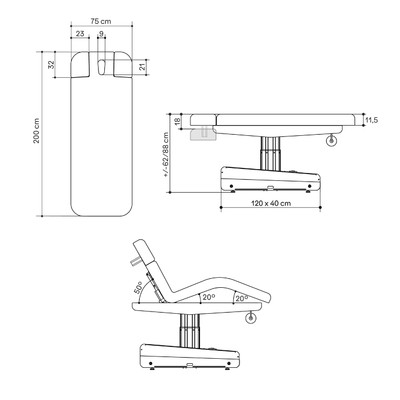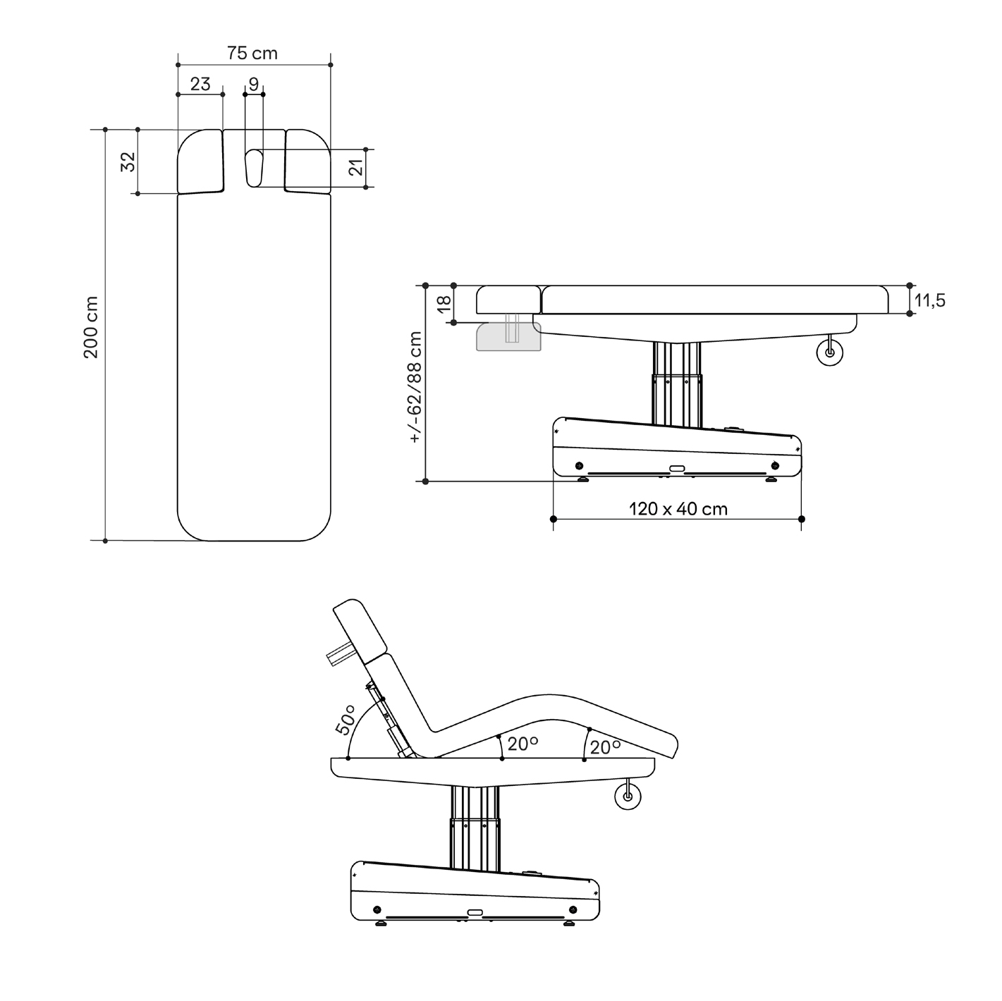 Provides maximum patient comfort with torso and knee elevation, while the integrated heating function enhances relaxation during treatment.