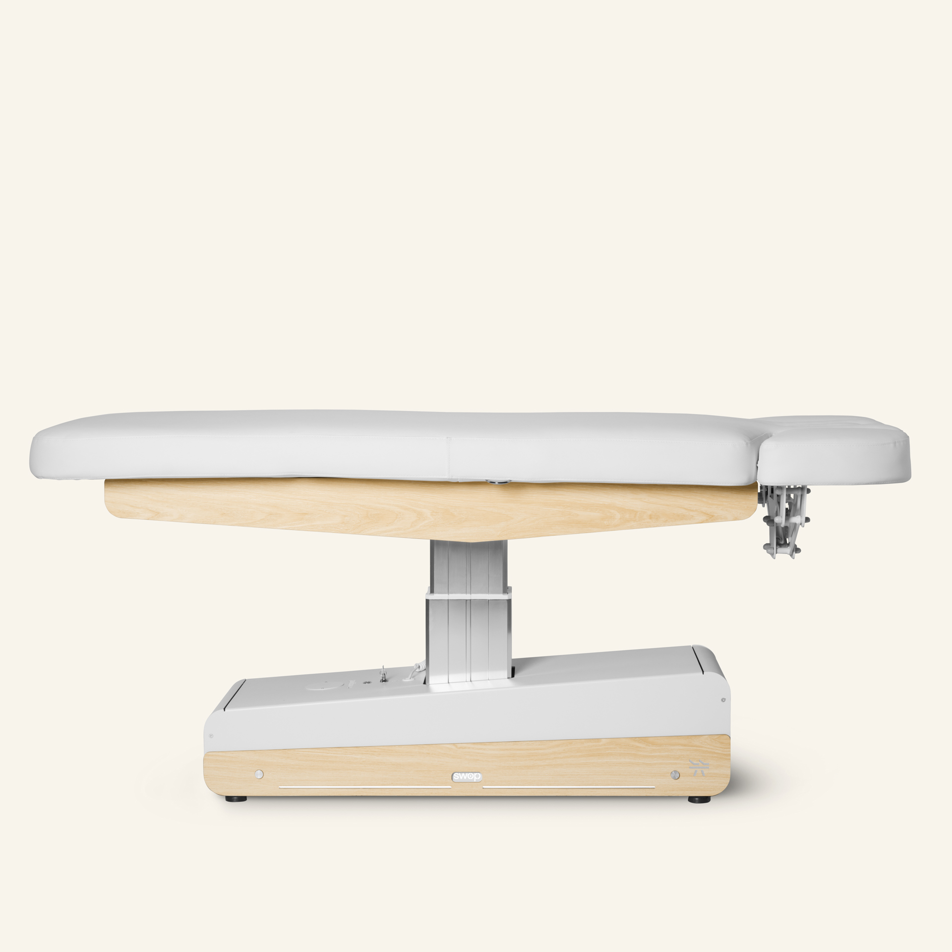 Electric treatment table with 3 motors, designed with continuous padding, heating, and adjustable armrests. Provides maximum patient comfort with torso and knee elevation, while the integrated heating function enhances relaxation during treatment.