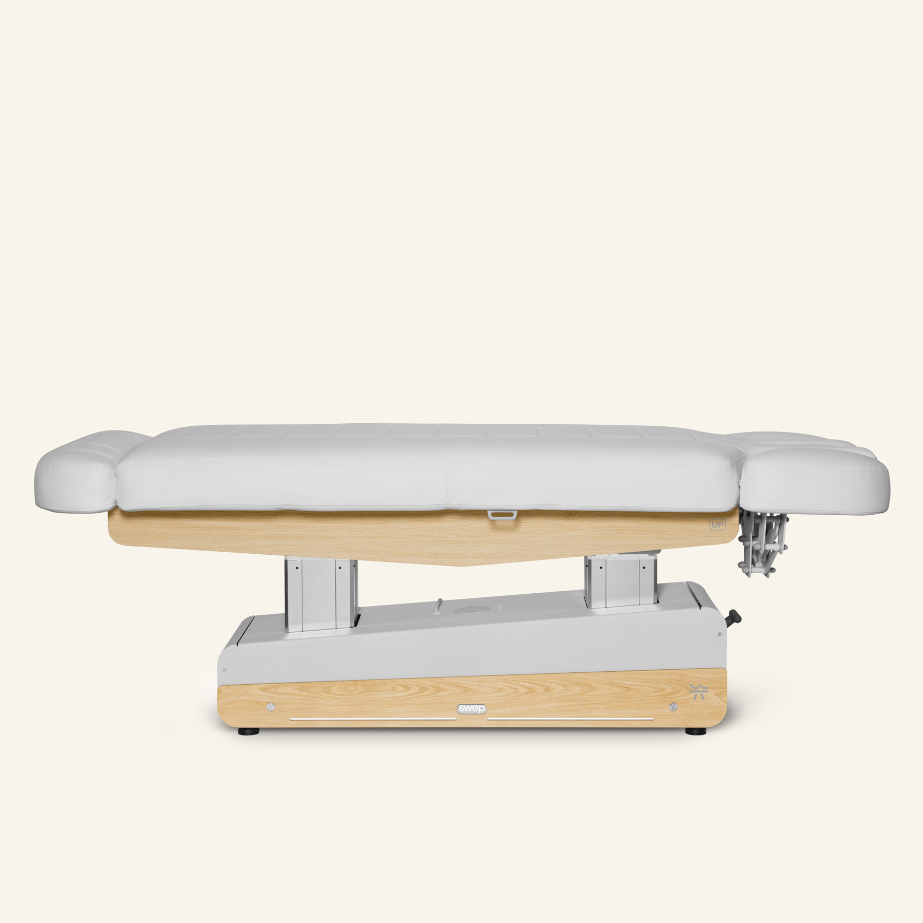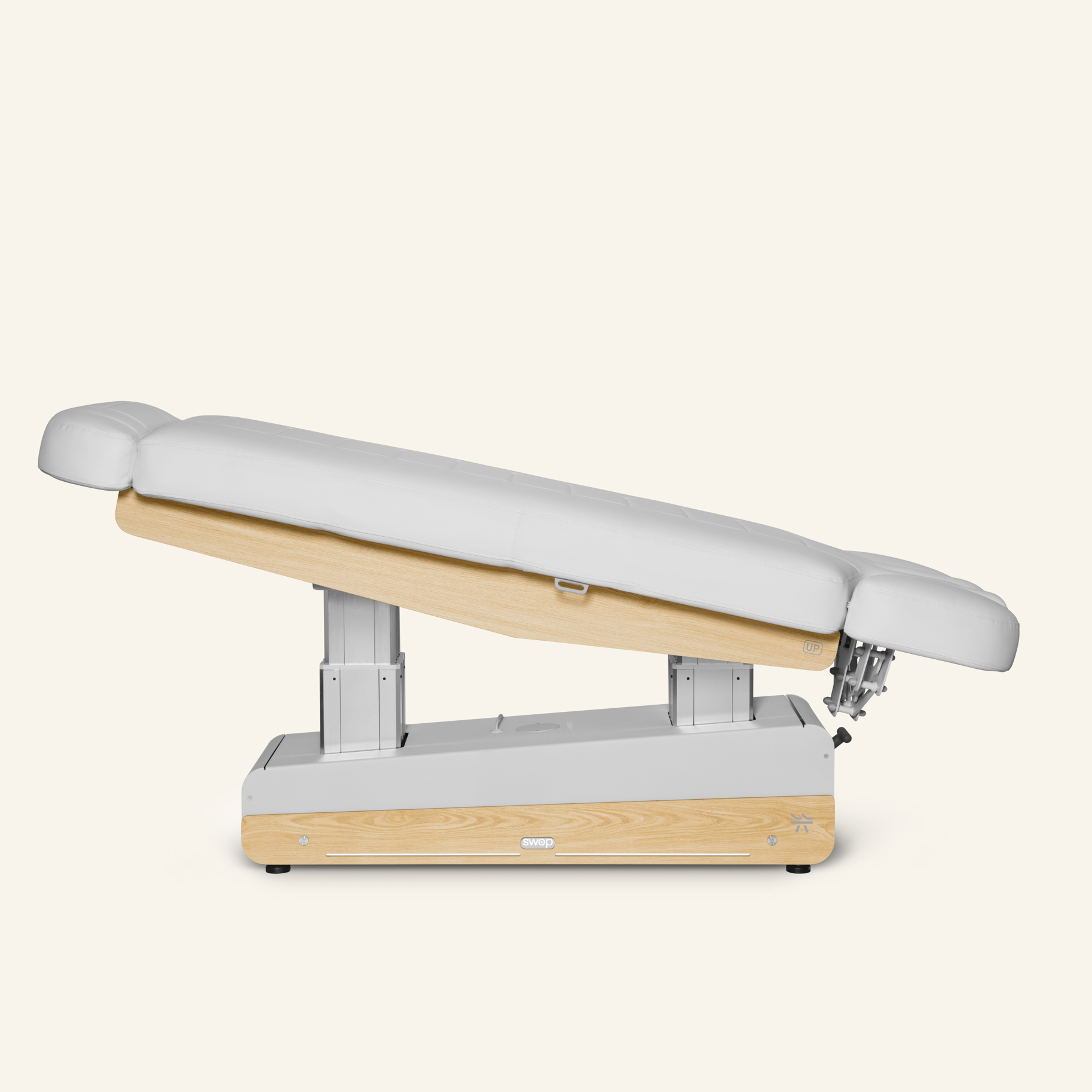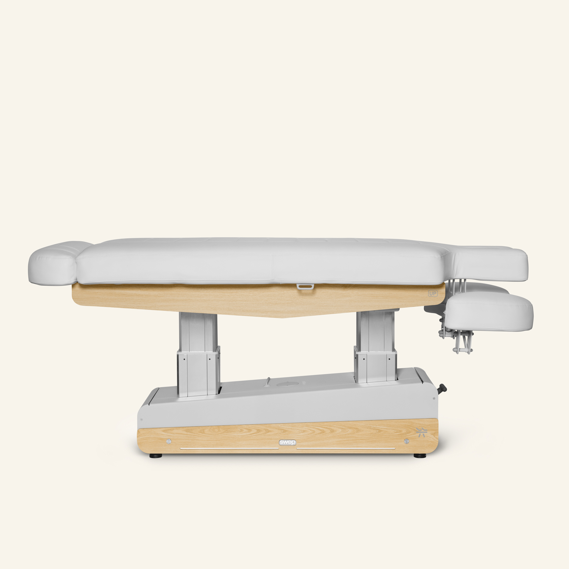 Electric 4-motor treatment table with a dual-column structure, enabling advanced positions such as Trendelenburg. Optimized for treatment efficiency, it features position memory, integrated heating, and adjustable armrests for superior patient comfort.