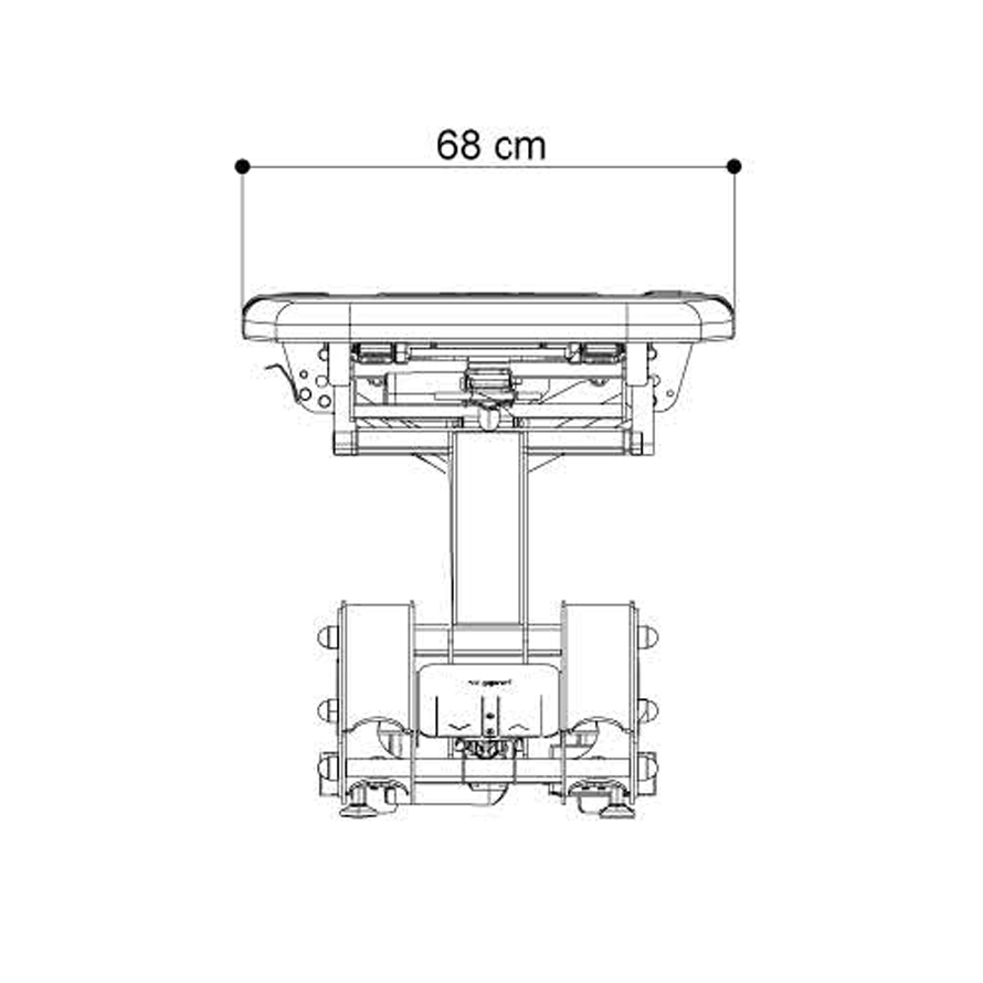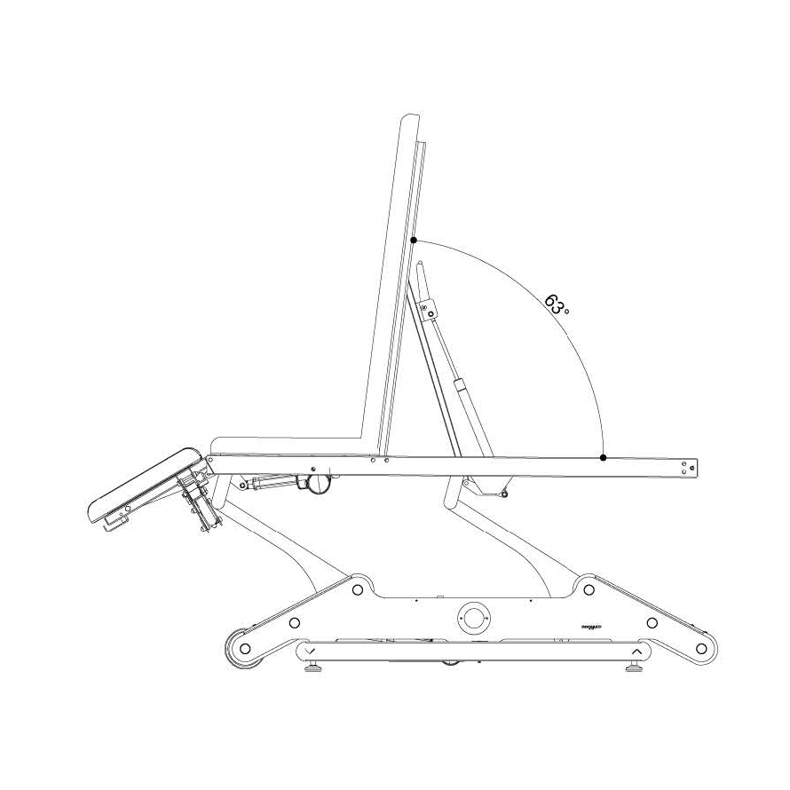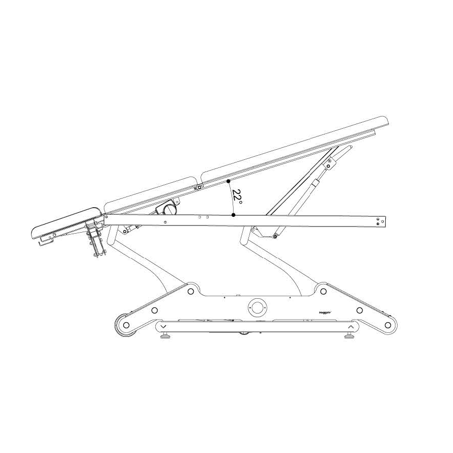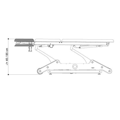 Two powerful motors control both the height and the inclination of the central section. The height is managed through a convenient perimeter bar built into the base, while kyphosis is adjusted via easy-to-reach side buttons.