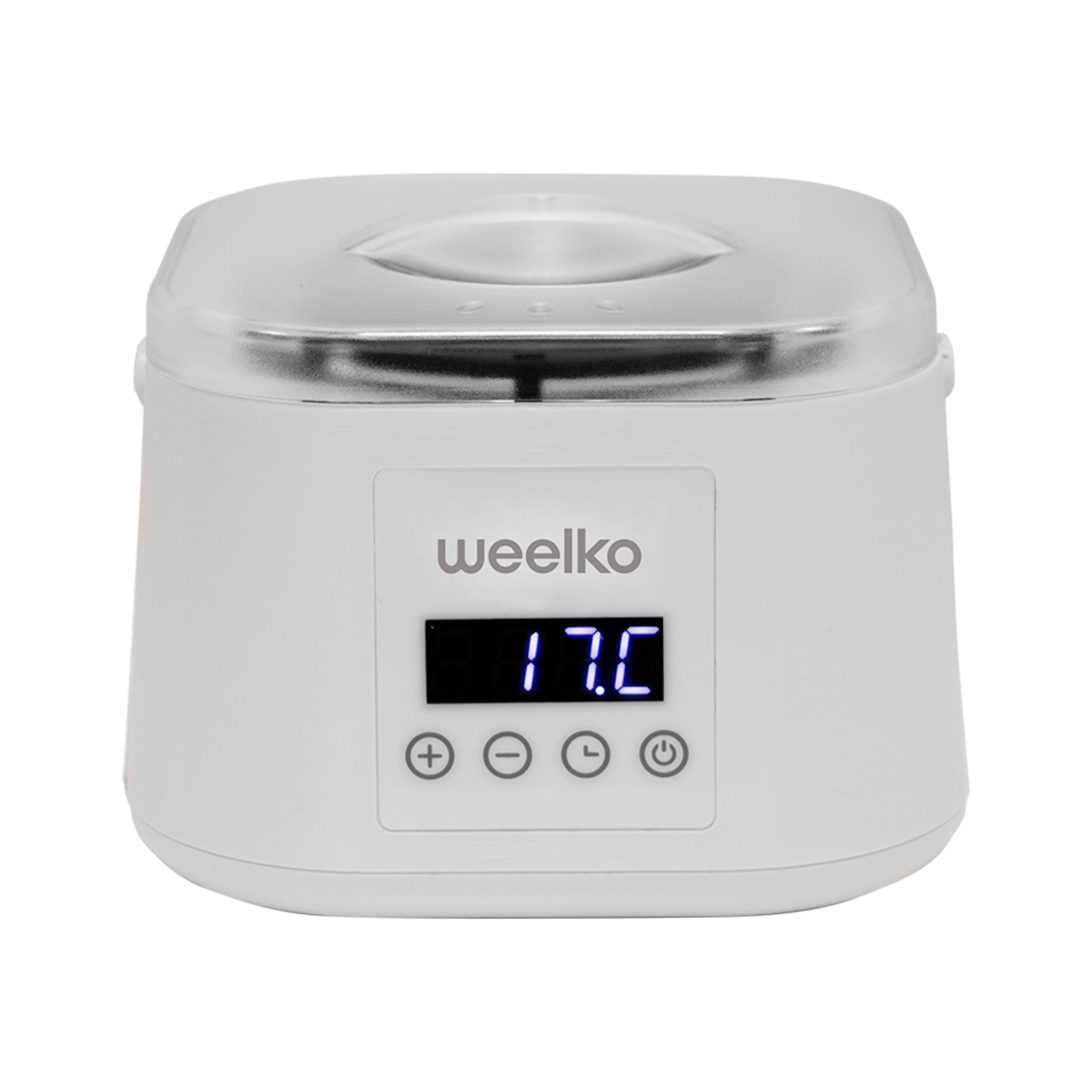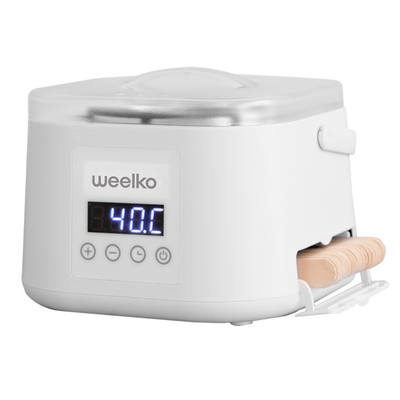 Compact and modern wax heater with digital screen. Removable aluminium pot of 500 ml capacity. Side compartment to store the hair removal spatulas. Temperature range 35-125ºC. White finishing.