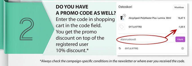 When you have added your desired products to the shopping cart and proceed to checkout, enter the discount code into the box provided on the page.