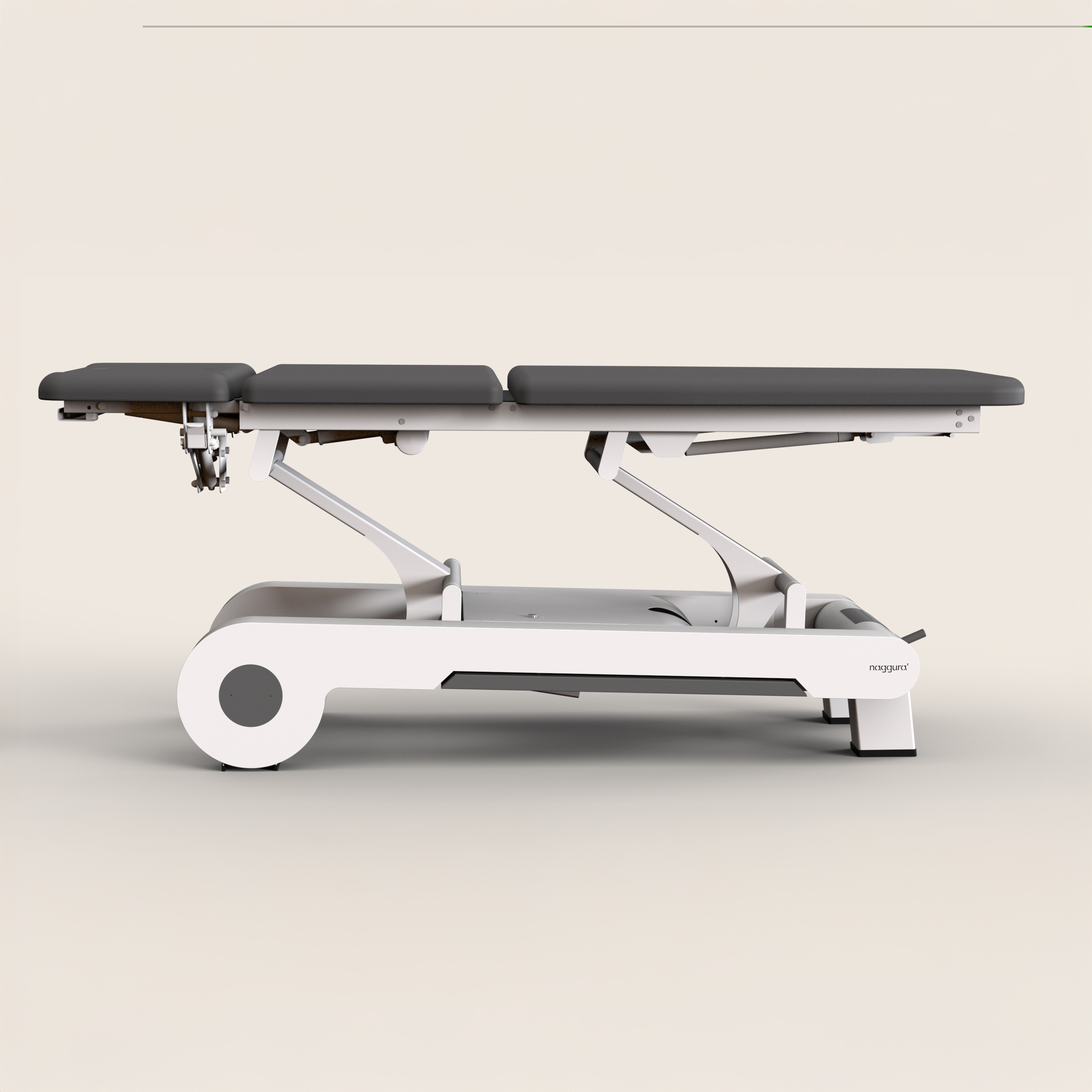 Monipuolinen, viidestä osasta koostuva sähköhoitopöytä. Sen vahvuutena on laaja säädettävyys: eri asentoja voidaan hyödyntää esimerkiksi Trendelenburgissa, lannerangan kyfoosihoidoissa tai hierontatuolina.