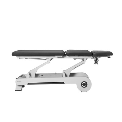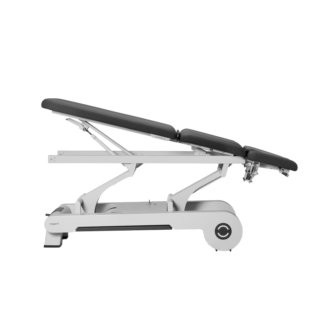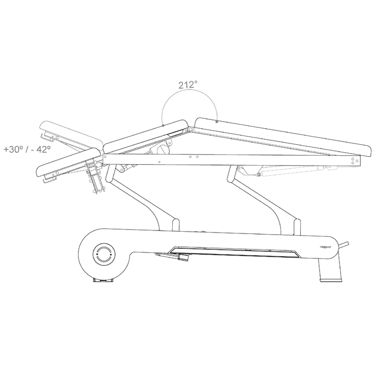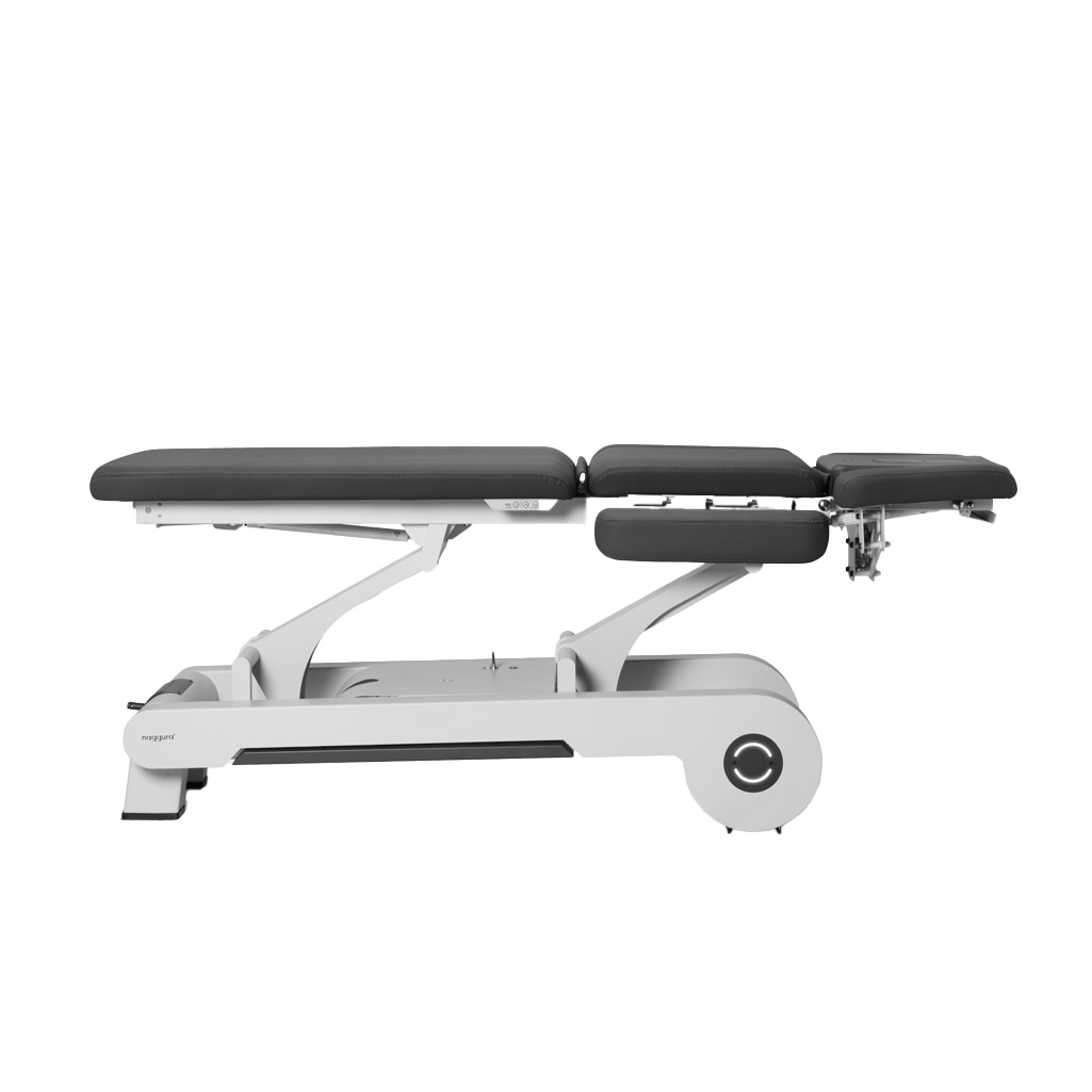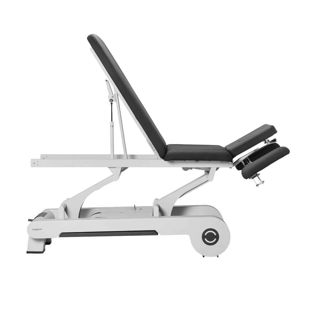 Nagguran suosituimpia uutuusmalleja. Tämä moniosainen, kolmirunkoinen hoitopöytä on suunniteltu tarjoamaan erinomainen ergonomia ja monipuoliset hoitomahdollisuudet. Keskiosassa on kaksi käännettävää käsinojaa, mikä tekee siitä erityisen käytännöllisen fysioterapeuteille, jotka haluavat työskennellä mahdollisimman lähellä potilasta.