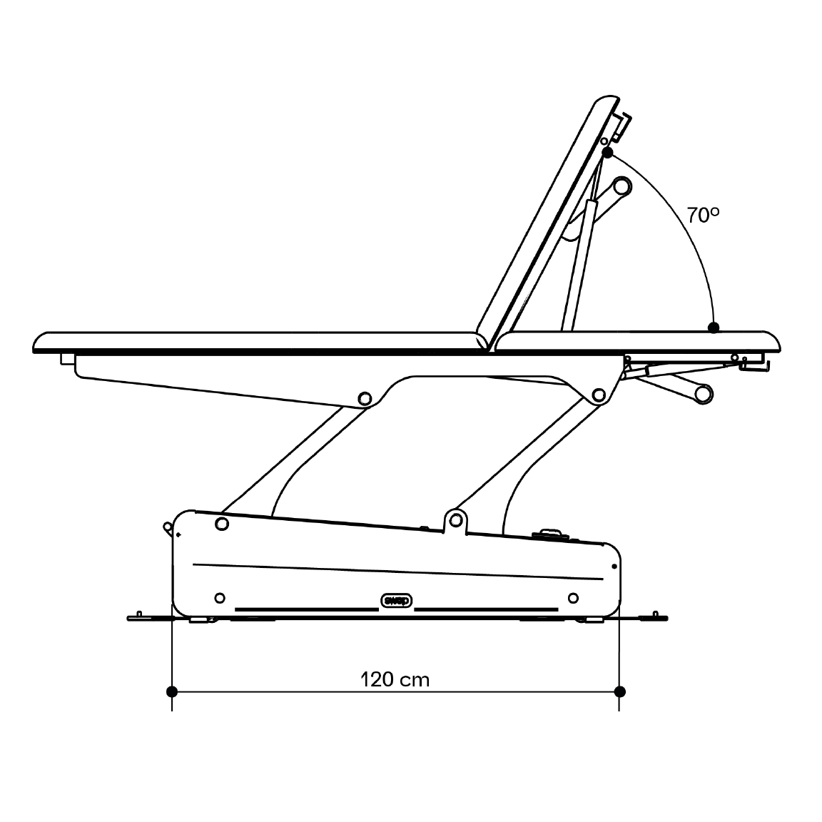 Vahvan moottorin ansiosta korkeutta voidaan säätää 50–90 cm välillä, mikä takaa ergonomisen työasennon terapeutille. Pitkänomainen pääosa säätyy kahden kaasujousen avulla, ja XL-lämmityselementeillä varustettu lämmitystoiminto tarjoaa kaksi lämpötilatasoa, jotka lisäävät asiakkaan mukavuutta.