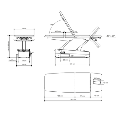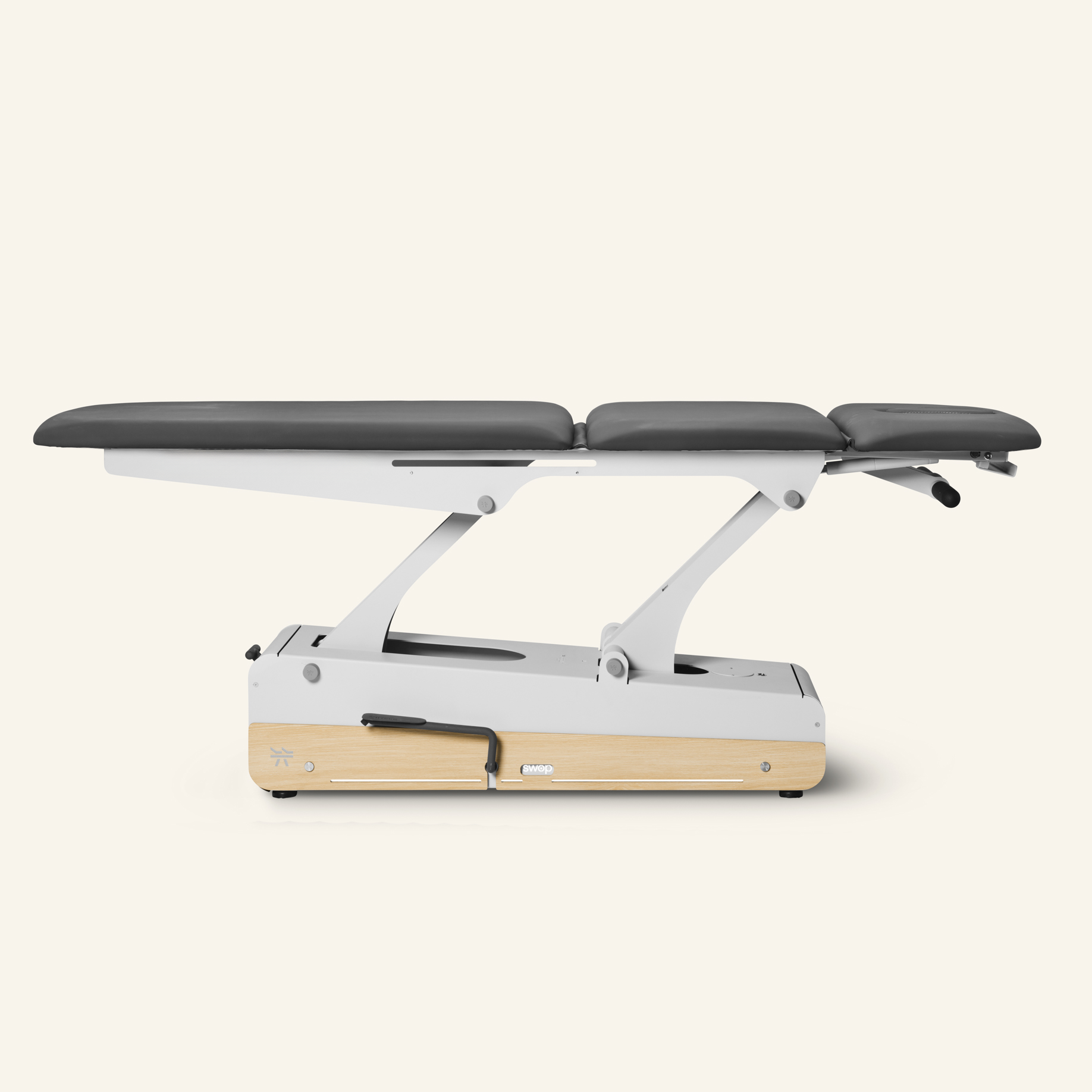 Swop 3F Hydro Pro hydraulinen hoitopöytä tarjoaa edistyksellisen ratkaisun ammattilaisten fysioterapiaan. Sen kolmiosainen säädettävä rakenne mahdollistaa useita asentoja ja maksimoi potilaan mukavuuden kasvopehmusteen, käsituen ja 360° lukittavien pyörien avulla. Korkeussäädön alue on 48–88 cm, ja pöydässä on integroitu LED-valo sekä erittäin kestävä verhoilu, jotka takaavat joustavan ja pitkäikäisen käytön kaikissa hoitosessioissa.