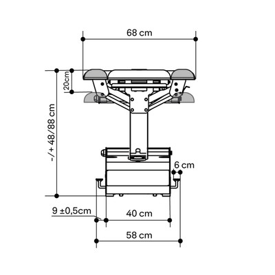TwinLift-käsituet: portaattomasti ja samanaikaisesti säädettävät kaasujousella, eivät osu terapeuttia vasten