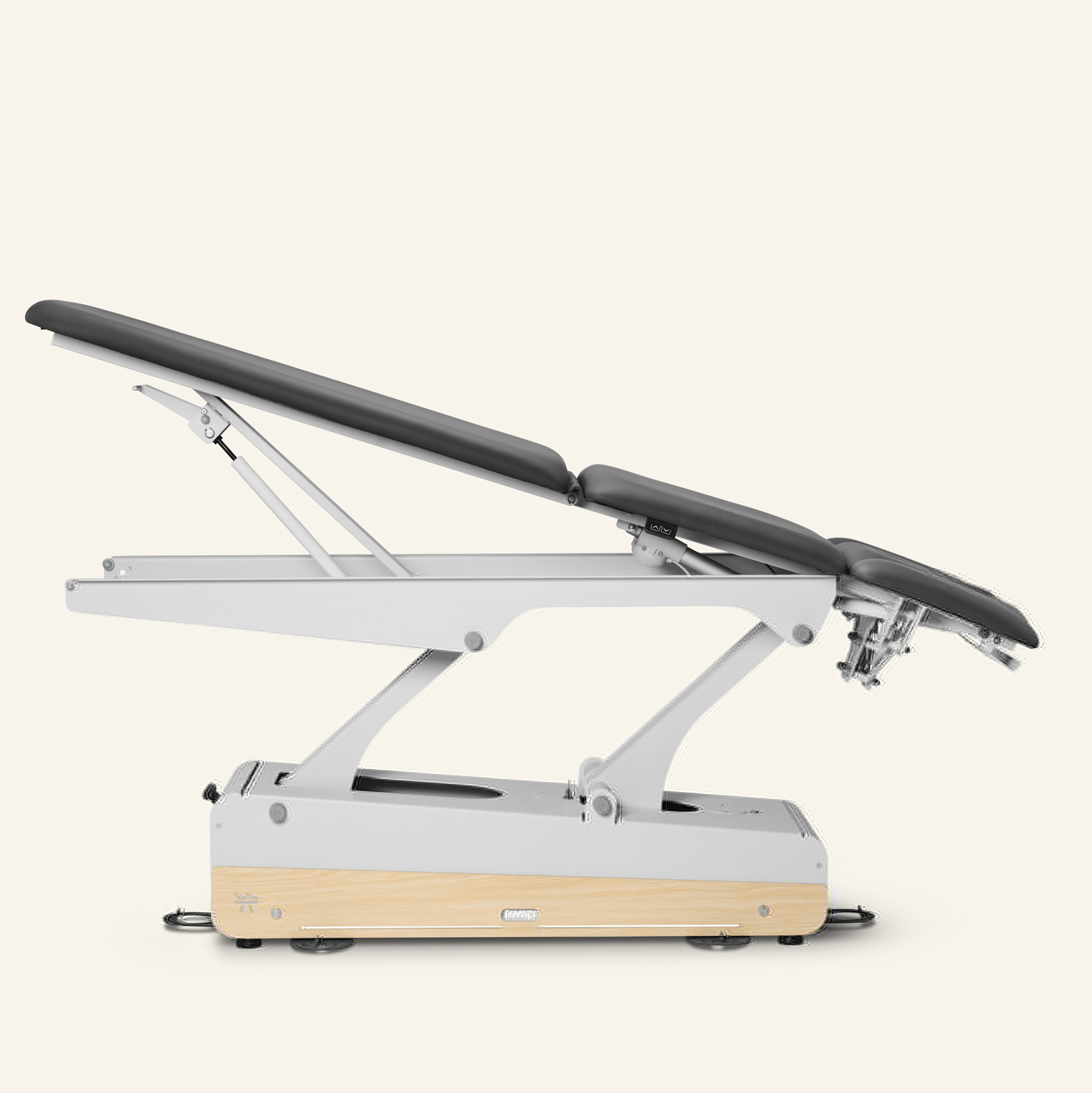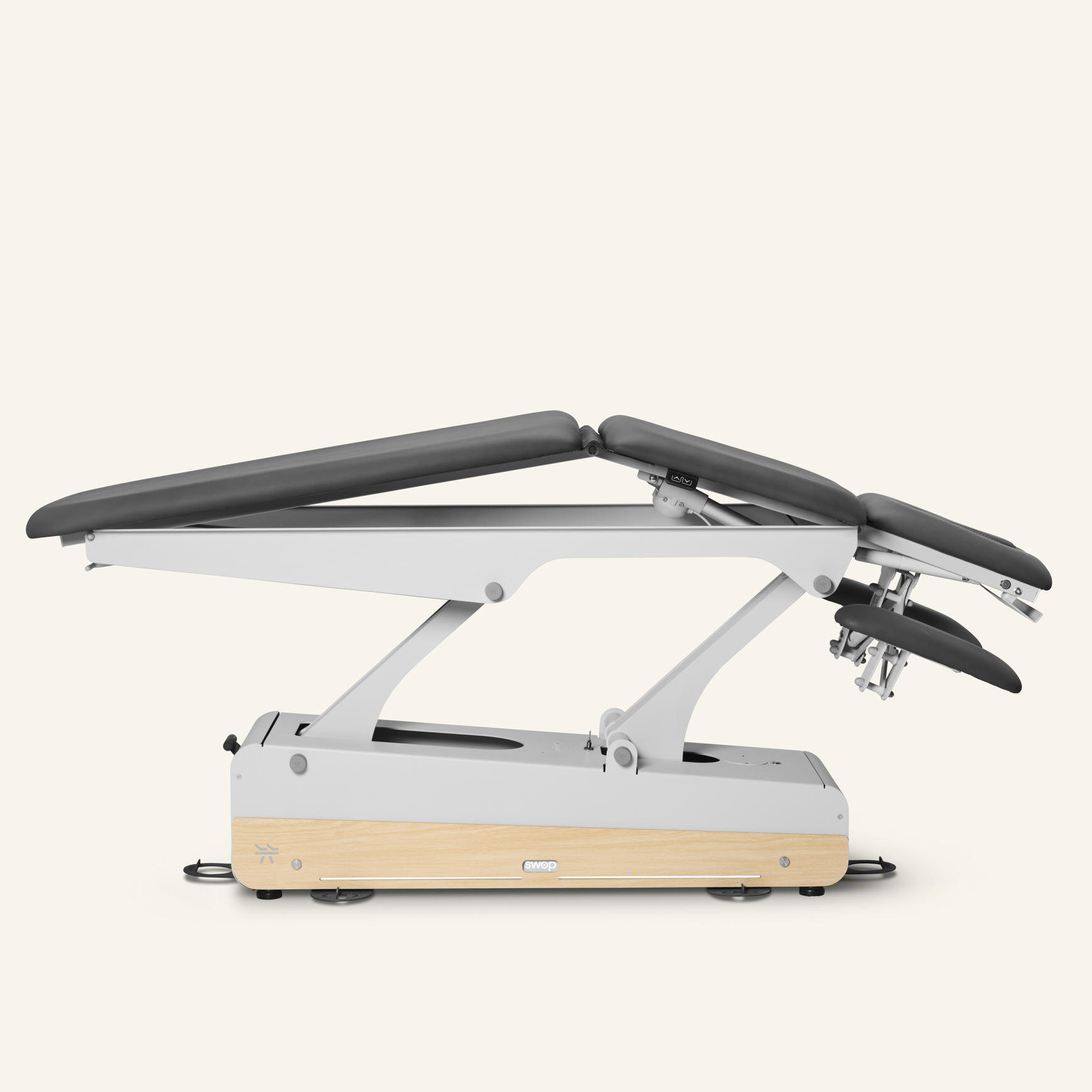 Swop 5 Pro Physio on korkeatasoinen, sähkötoiminen fysioterapiapöytä, joka mullistaa hoitopöytien markkinat. Se on monipuolinen “all-terrain”-malli, jonka avulla terveydenhuollon ammattilaiset voivat tehdä hoitoja täysin vapaasti, samalla kun potilas saa olla mukavasti ja rennosti.