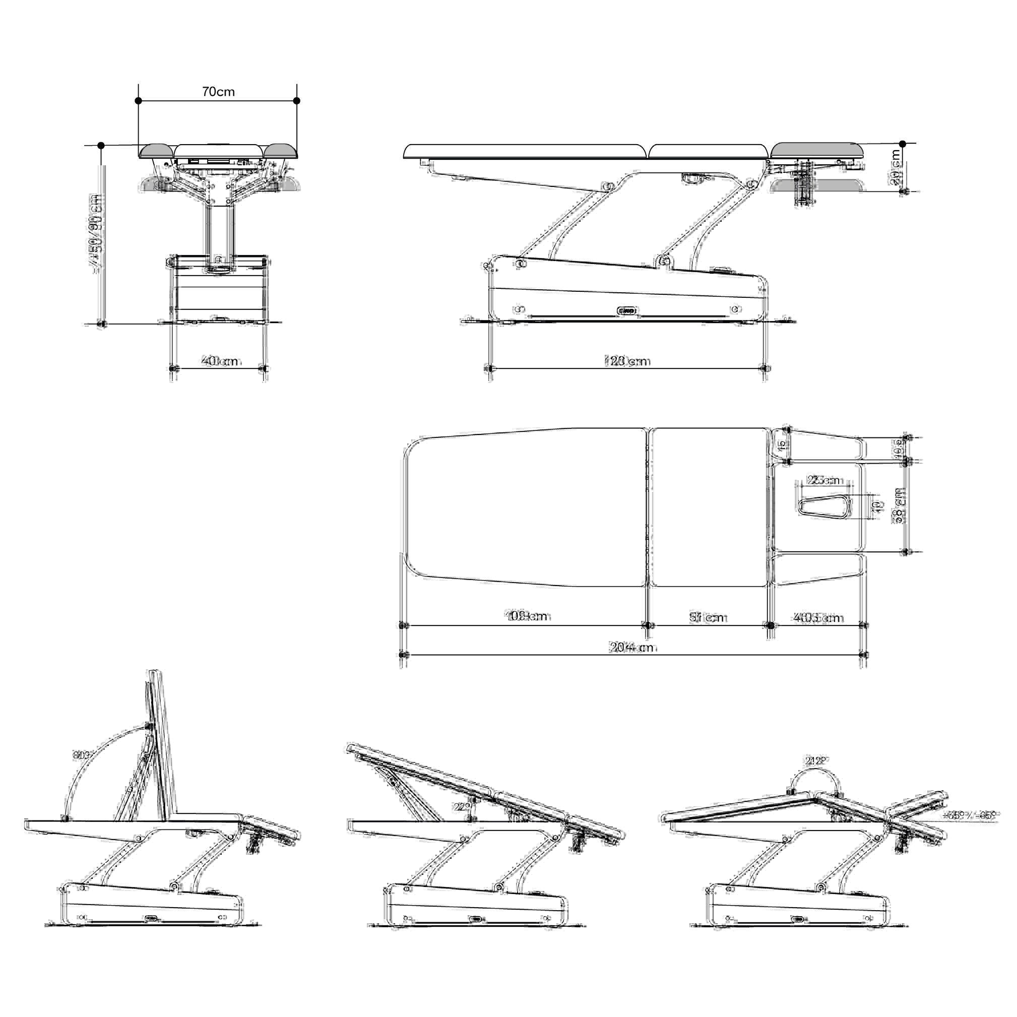 Pöydän design on huolellisesti viimeistelty: puhtaat linjat, näyttävät muodot ja saumaton verhoilu takaavat sekä potilaan mukavuuden että käytännöllisyyden hoidon ja puhdistuksen kannalta. Se soveltuu erinomaisesti potilaan hoitoon joko täysin makuulla tai puoli-istuvassa asennossa.