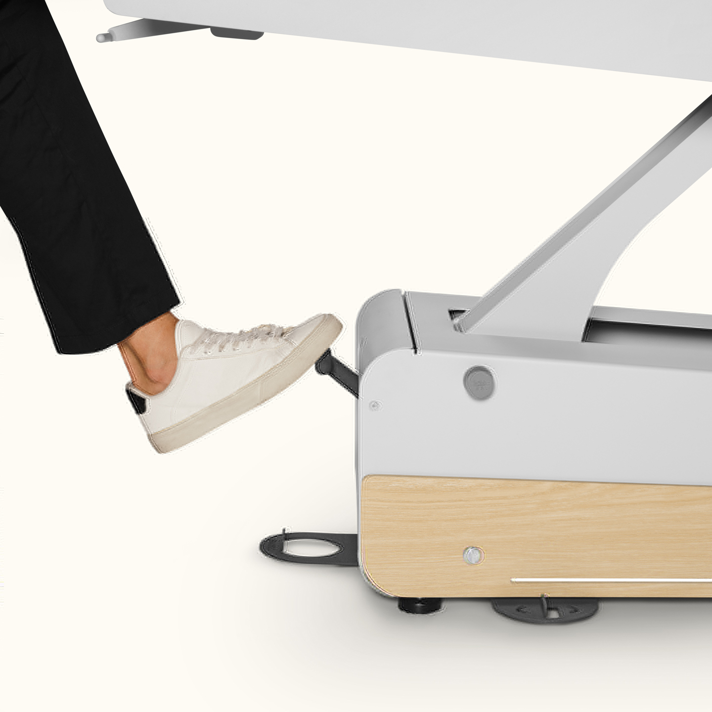 Helppo liikuteltavuus: vivulla pöytä nousee neljälle pyörälle, mahdollistaen 360° liikkeen.