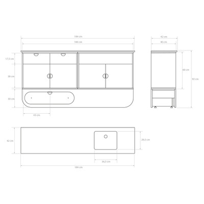 Mitat: 184 × 42 × 92 cm