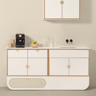 Valmistettu korkealaatuisesta vanerista, pinnoitettu teknisellä melamiinilla ja vesitiiviillä reunoilla lisäsuojan varmistamiseksi. Peruslaatikossa Push to Open -mekanismi sekä pehmeä, hiljainen sulkeutuminen.
