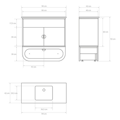 Mitat: 94 × 42 × 92 cm