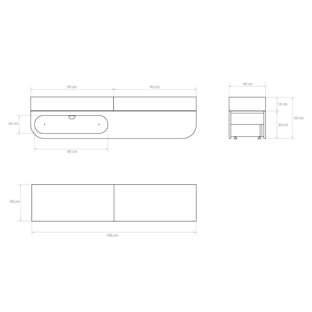 Sisäänrakennettu laatikko, jossa on Push-to-Open-mekanismi ja pehmeä sulkeutuminen, lisää käyttömukavuutta. Minimalistinen muotoilu sopii täydellisesti klinikoihin, hyvinvointikeskuksiin ja kaikkiin tiloihin, joissa halutaan yhdistää toiminnallisuus ja estetiikka.