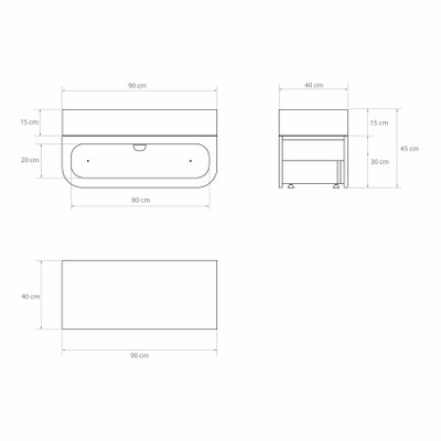 Vankka tammiviimeistelty vanerirakenne ja tekninen melamiinipinta kosteussuojatuin reunoin takaavat erinomaisen vakauden ja kestävyyden. Minimalistinen muotoilu sulautuu harmonisesti klinikoihin, hoitokeskuksiin ja muihin tiloihin, joissa haetaan tasapainoa toimivuuden ja estetiikan välillä.