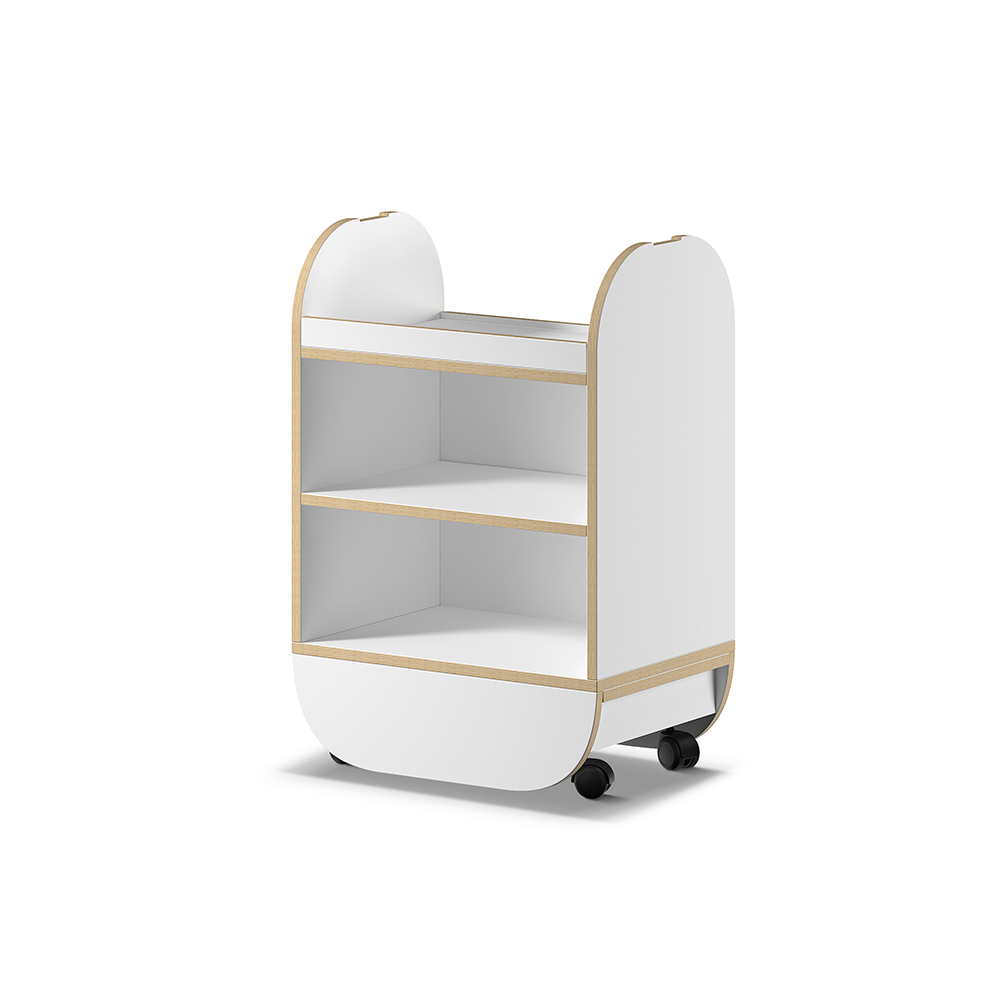 Saatavana versioina laatikoilla tai avohyllyillä sekä valkoisella tai tammen sävyllä viimeisteltynä.