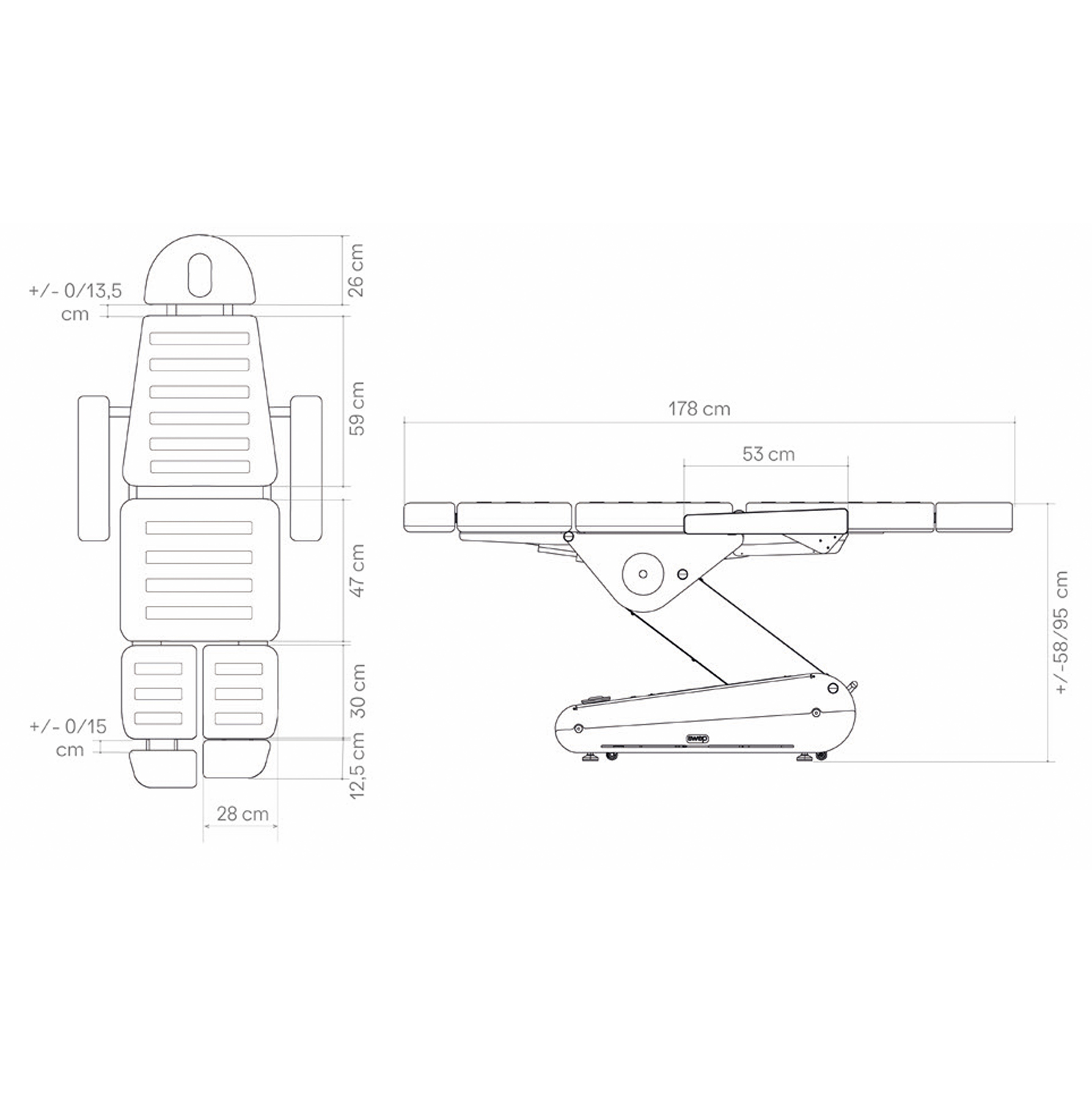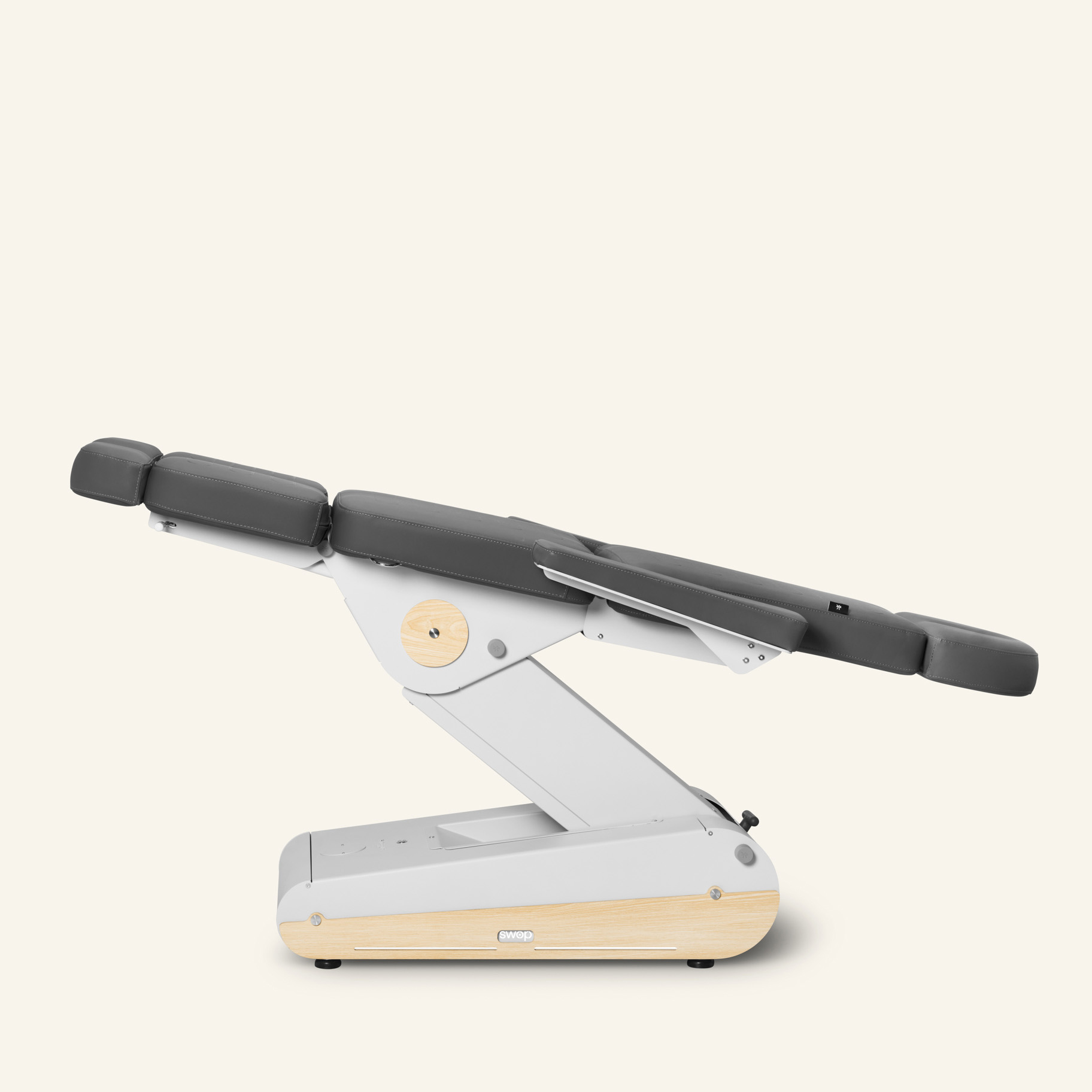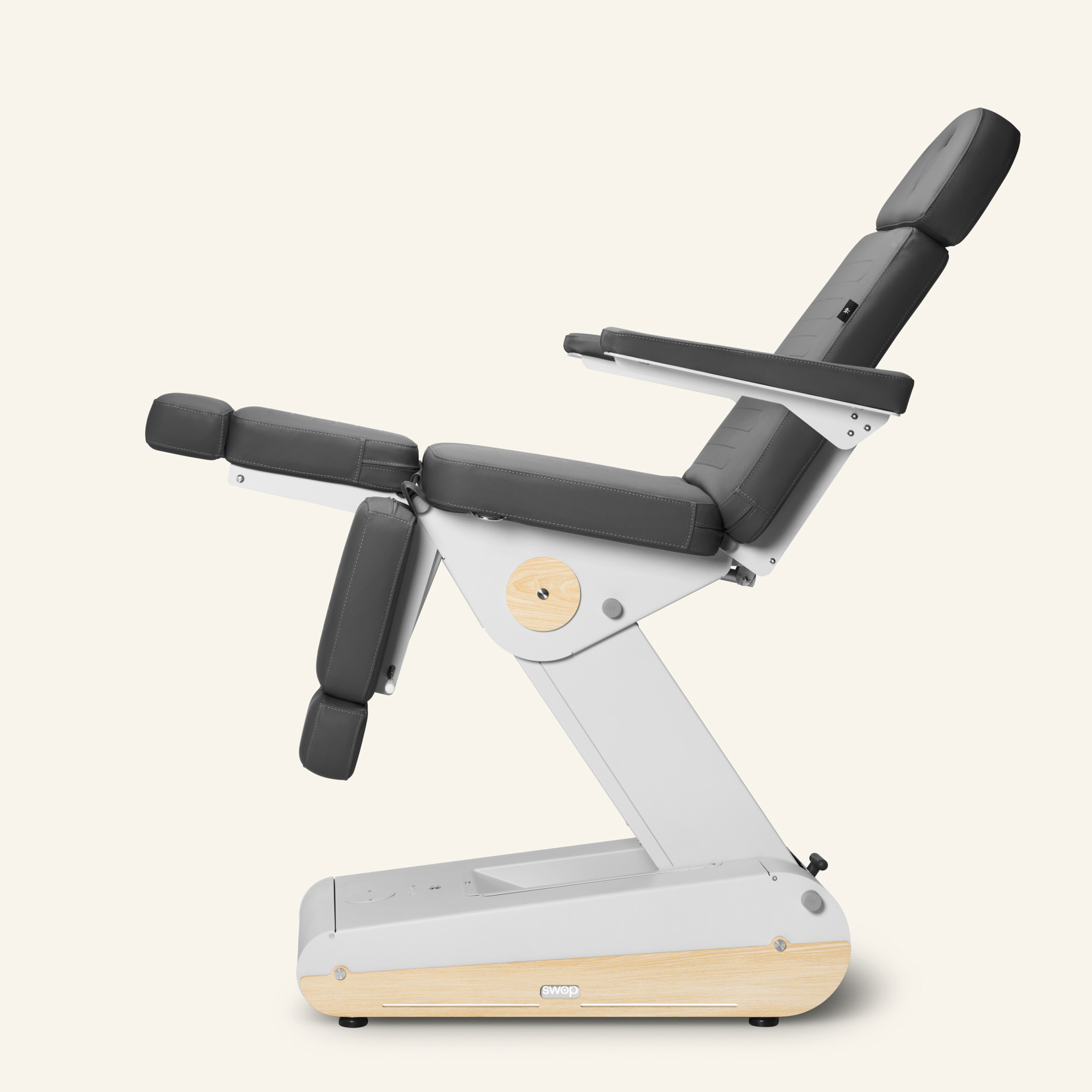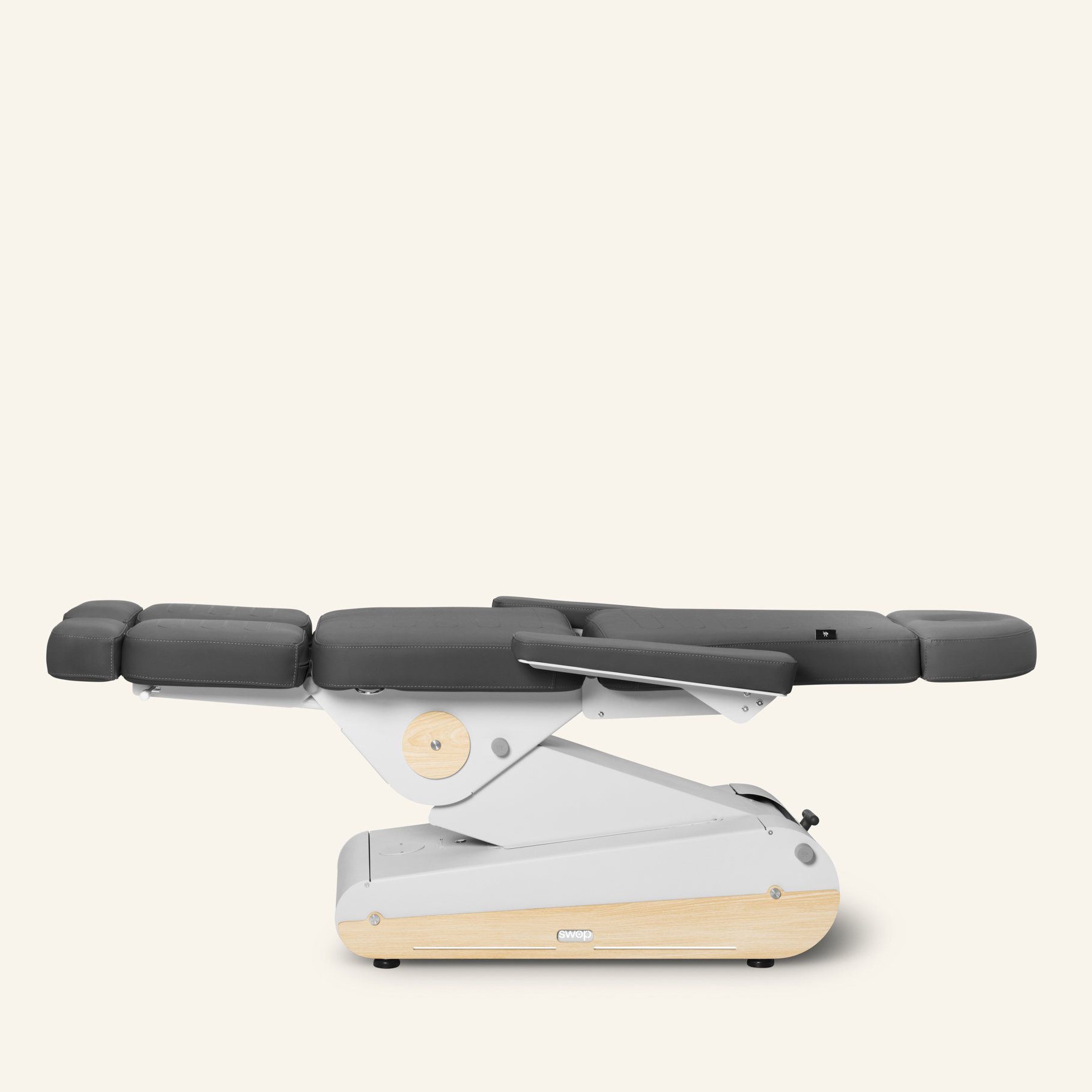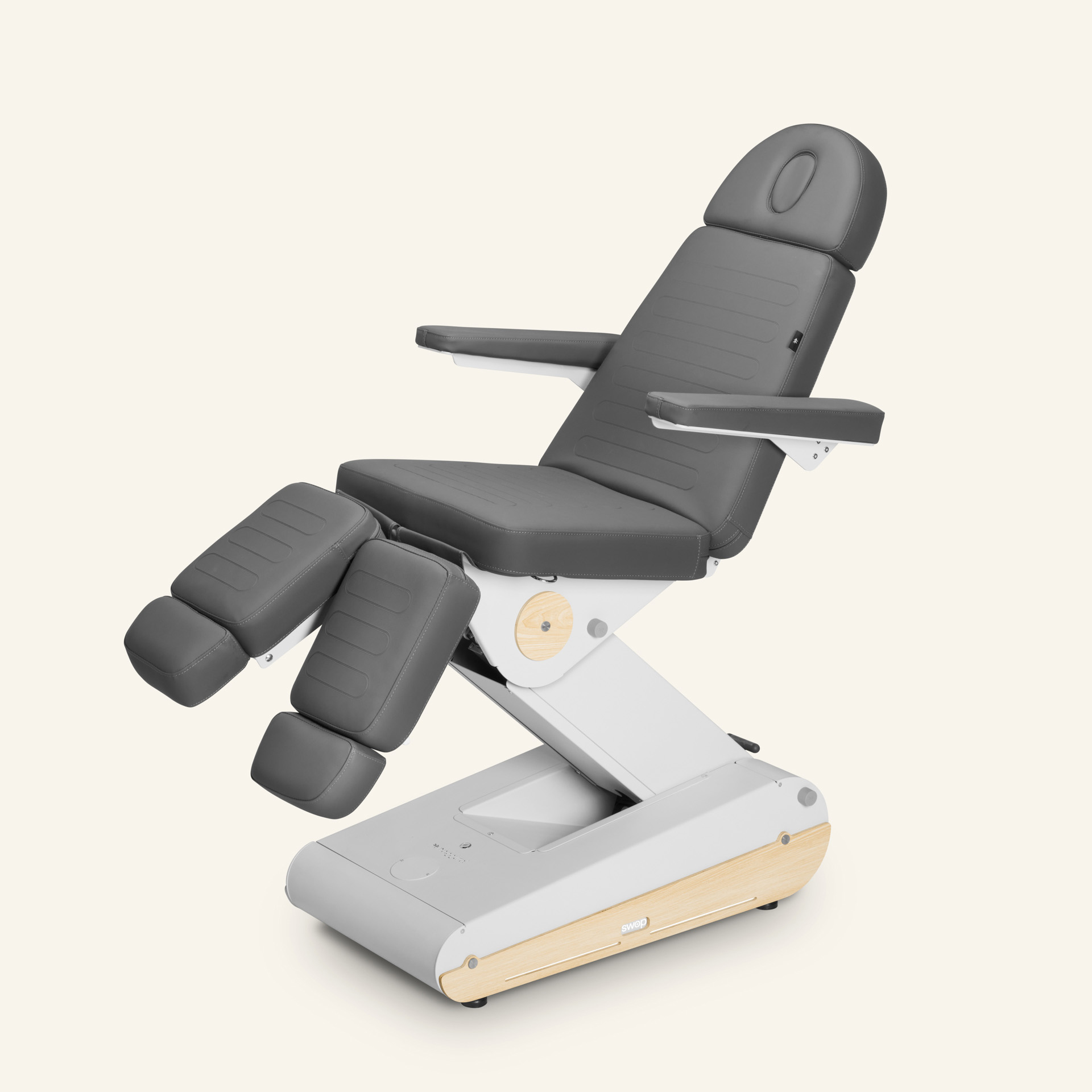 Sähkökäyttöinen hoitotuoli 3 moottorilla, jossa on erilliset ja jatkettavat jalkatuet monipuoliseen käyttöön. Irrotettavat ja taitettavat käsinojat tarjoavat maksimaalisen mukavuuden ja toiminnallisuuden. Moniasentoinen tuoli, joka voidaan tarvittaessa muuntaa myös hoitopöydäksi.