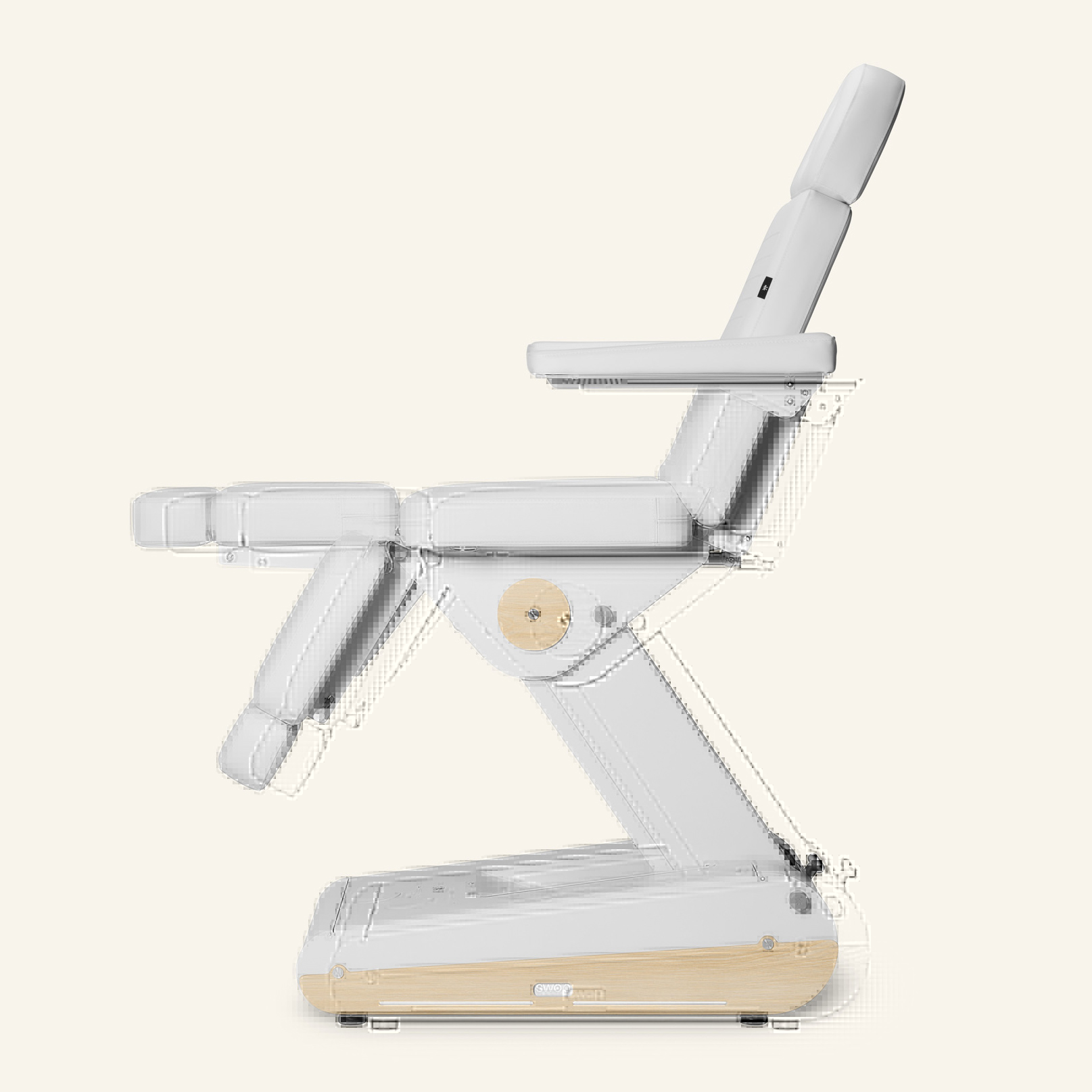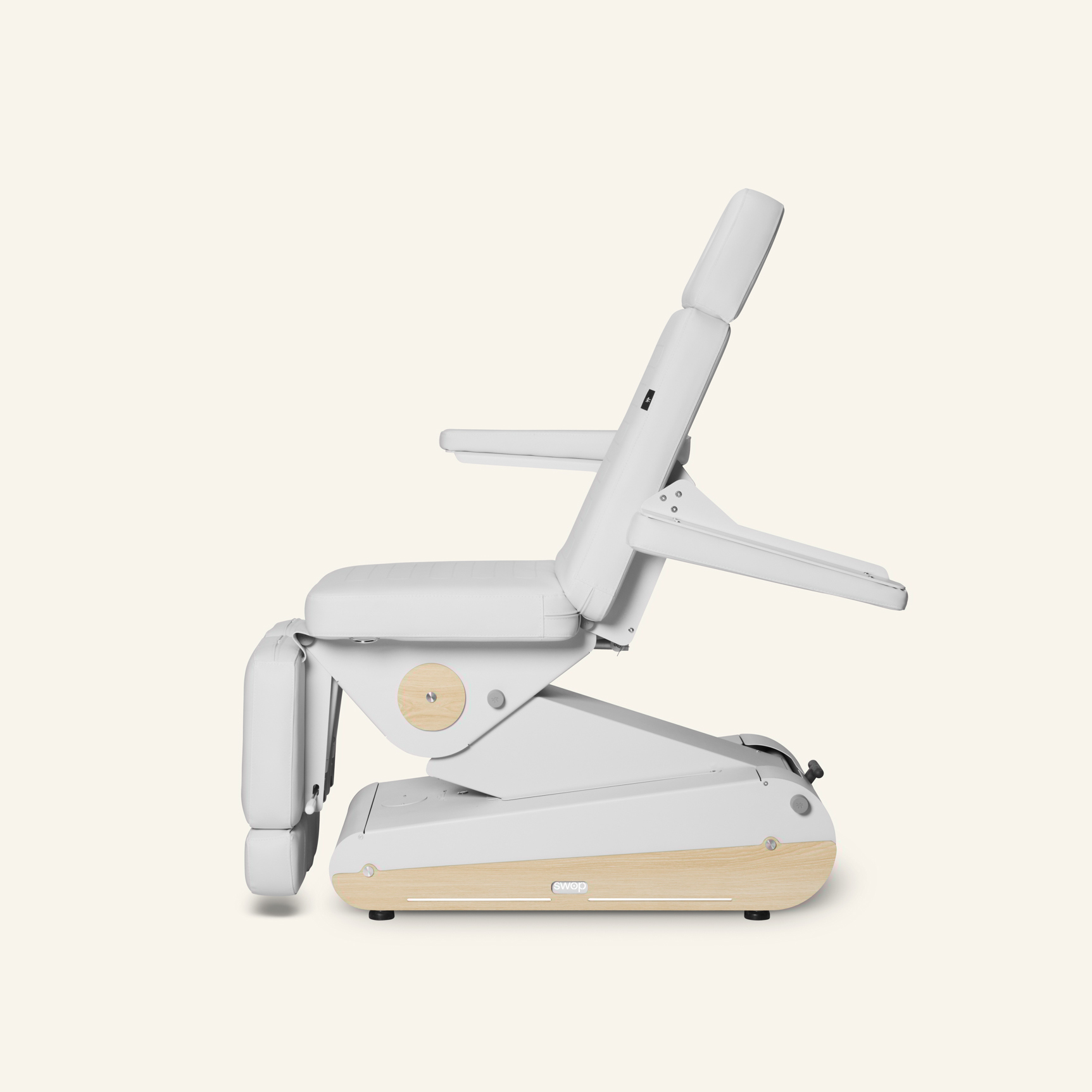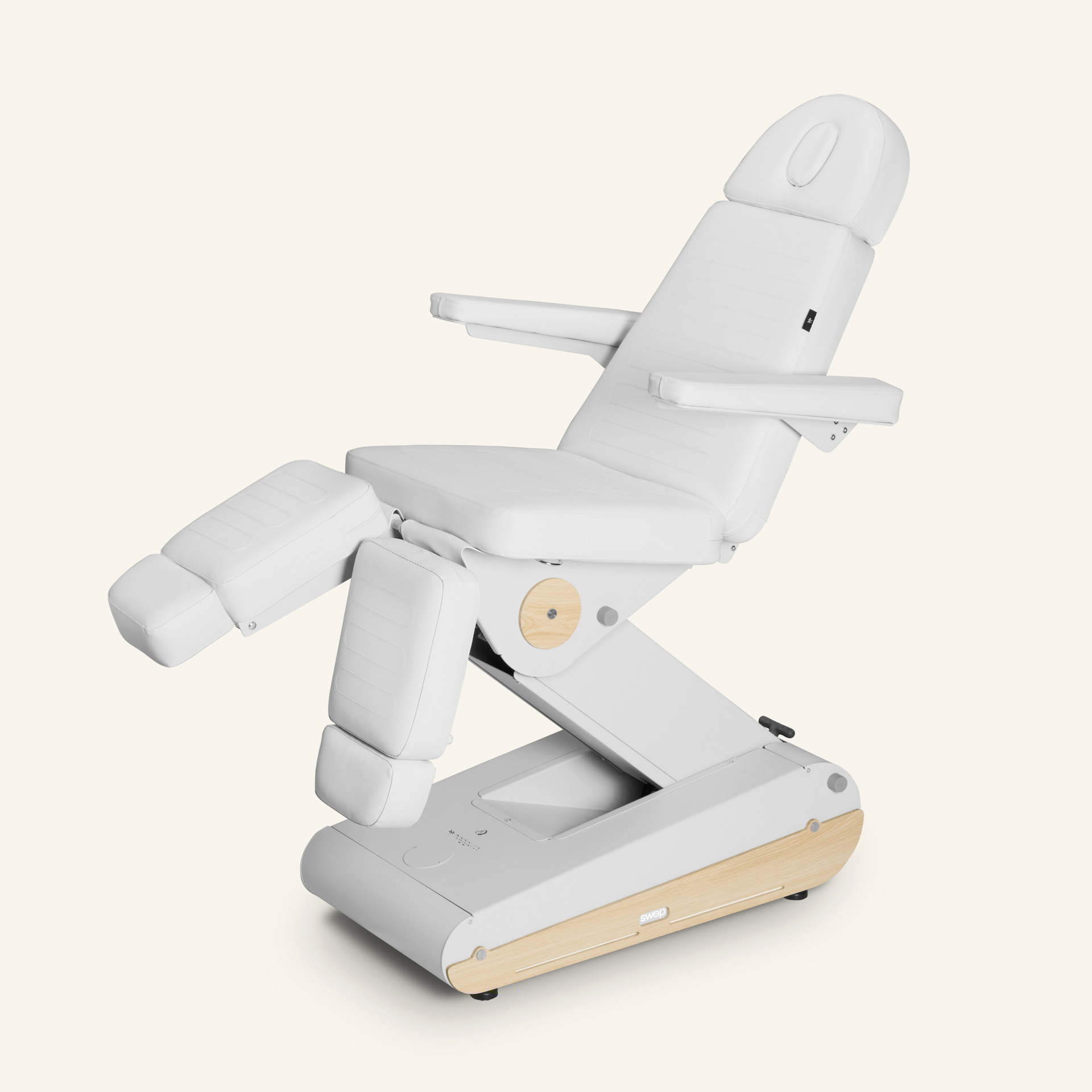 Sähkökäyttöinen hoitotuoli 3 moottorilla, jossa on erilliset ja jatkettavat jalkatuet monipuoliseen käyttöön. Irrotettavat ja taitettavat käsinojat tarjoavat maksimaalisen mukavuuden ja toiminnallisuuden. Moniasentoinen tuoli, joka voidaan tarvittaessa muuntaa myös hoitopöydäksi.