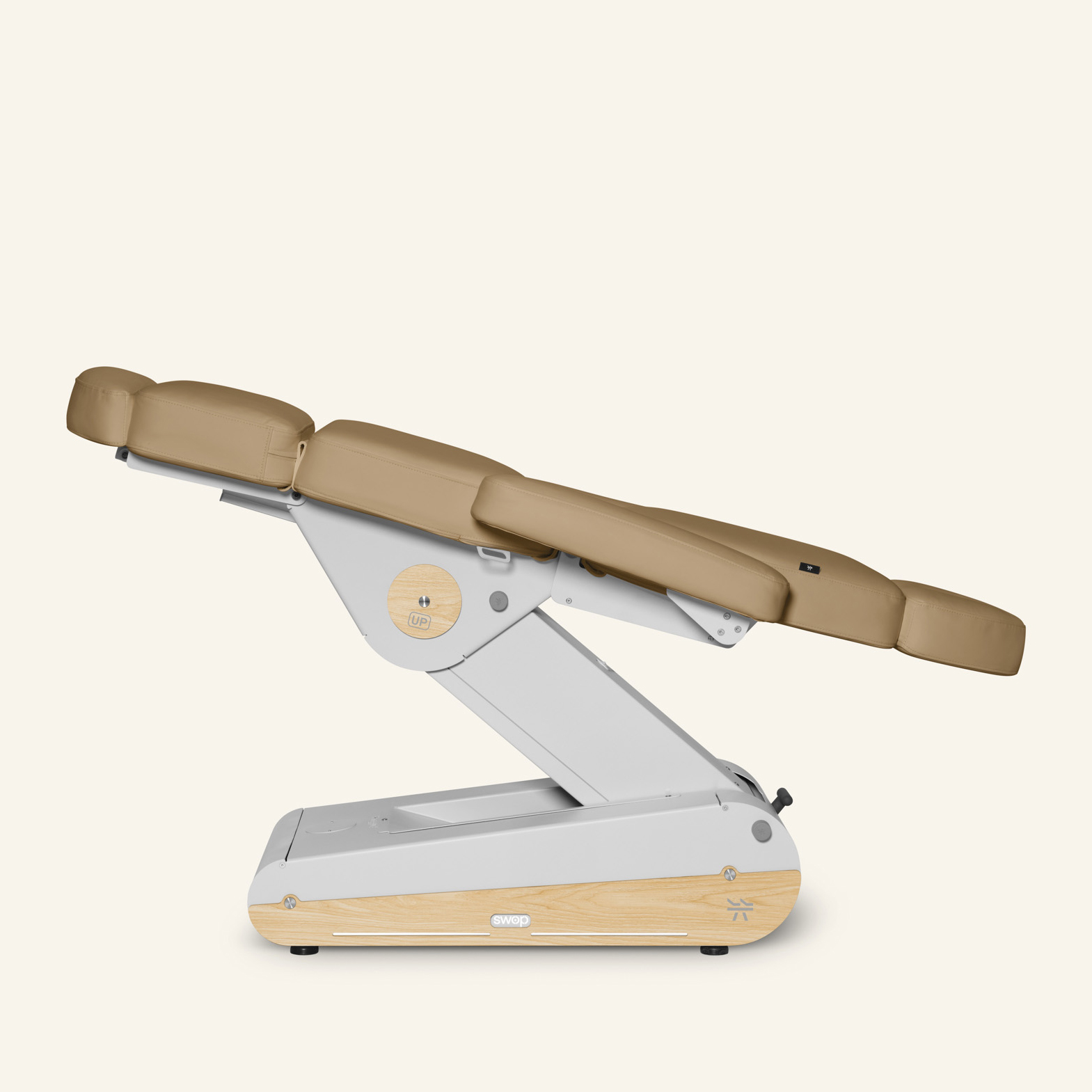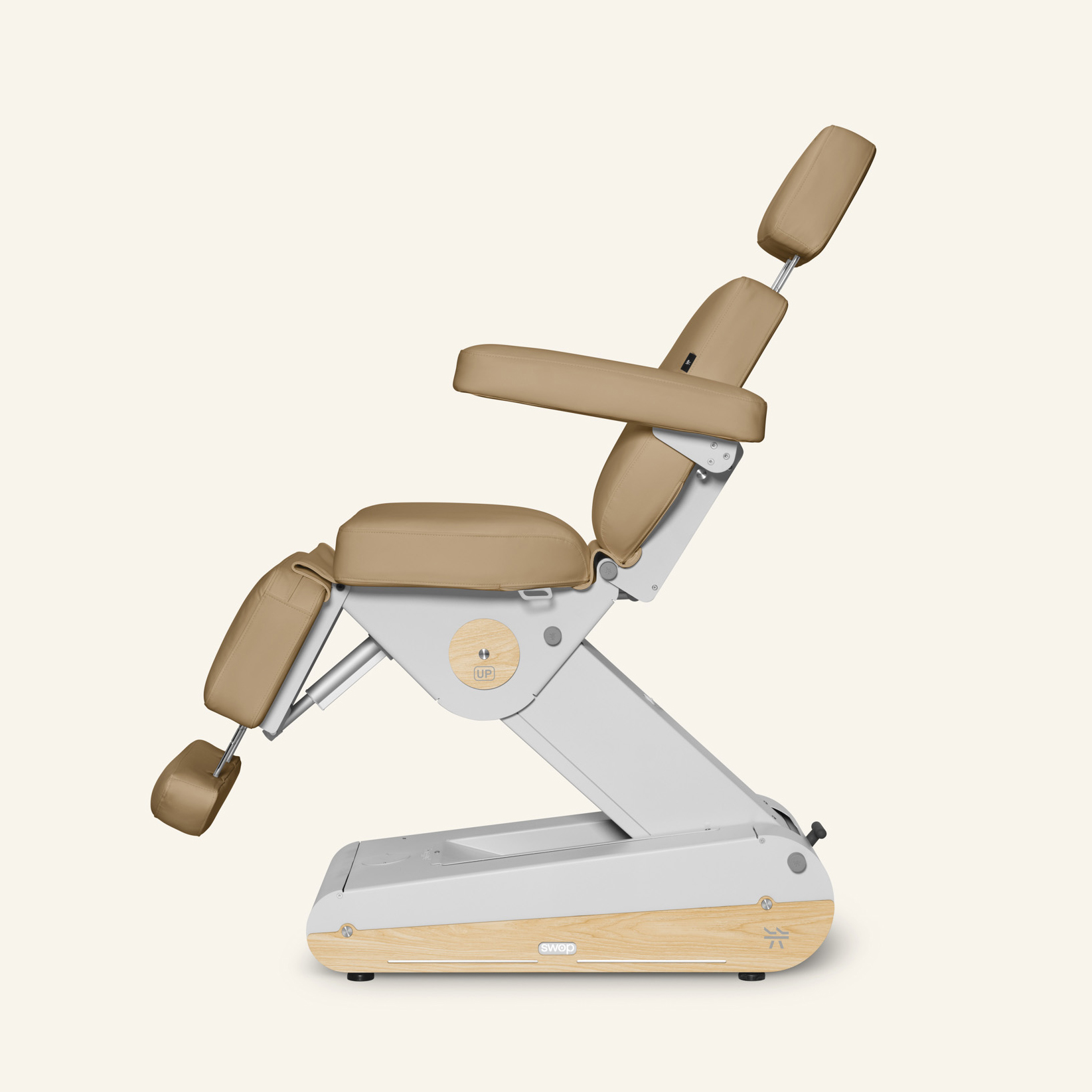 Sähkökäyttöinen hoitotuoli 4 moottorilla ja yhtenäisellä jatkettavalla jalkatuella, suunniteltu tarjoamaan maksimaalinen saavutettavuus ja mukavuus. Käännettävät ja irrotettavat käsinojat varmistavat ergonomisen työskentelyasennon hoitojen aikana. Tarjoaa useita eri asentoja, mukaan lukien sängyn ja zero gravity -asennon, täydelliseen rentoutumiskokemukseen.