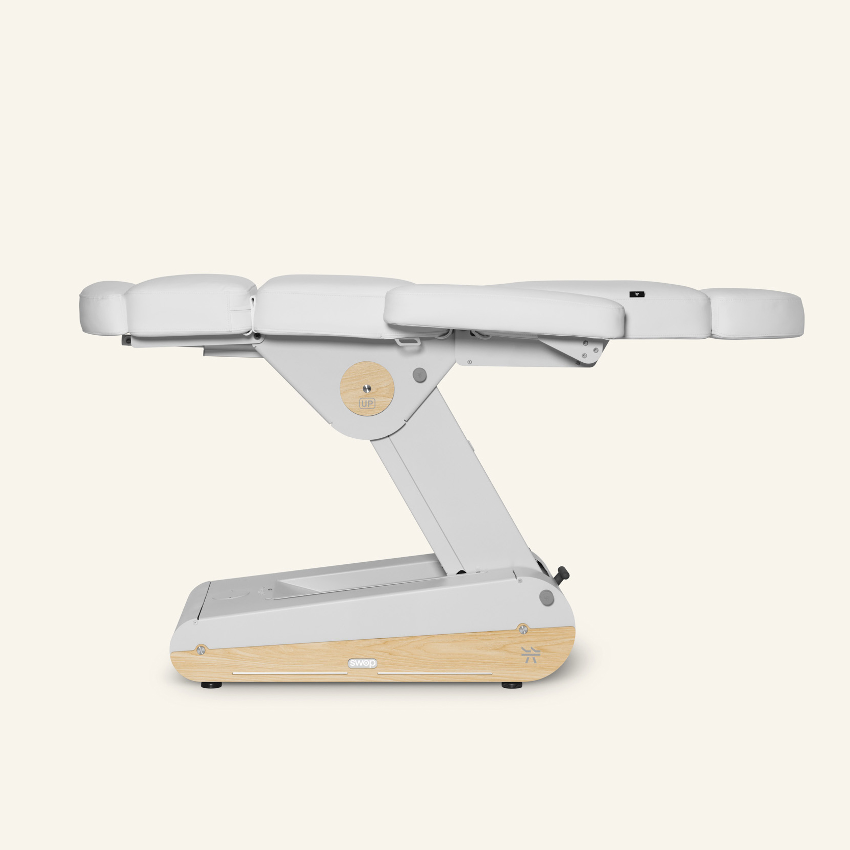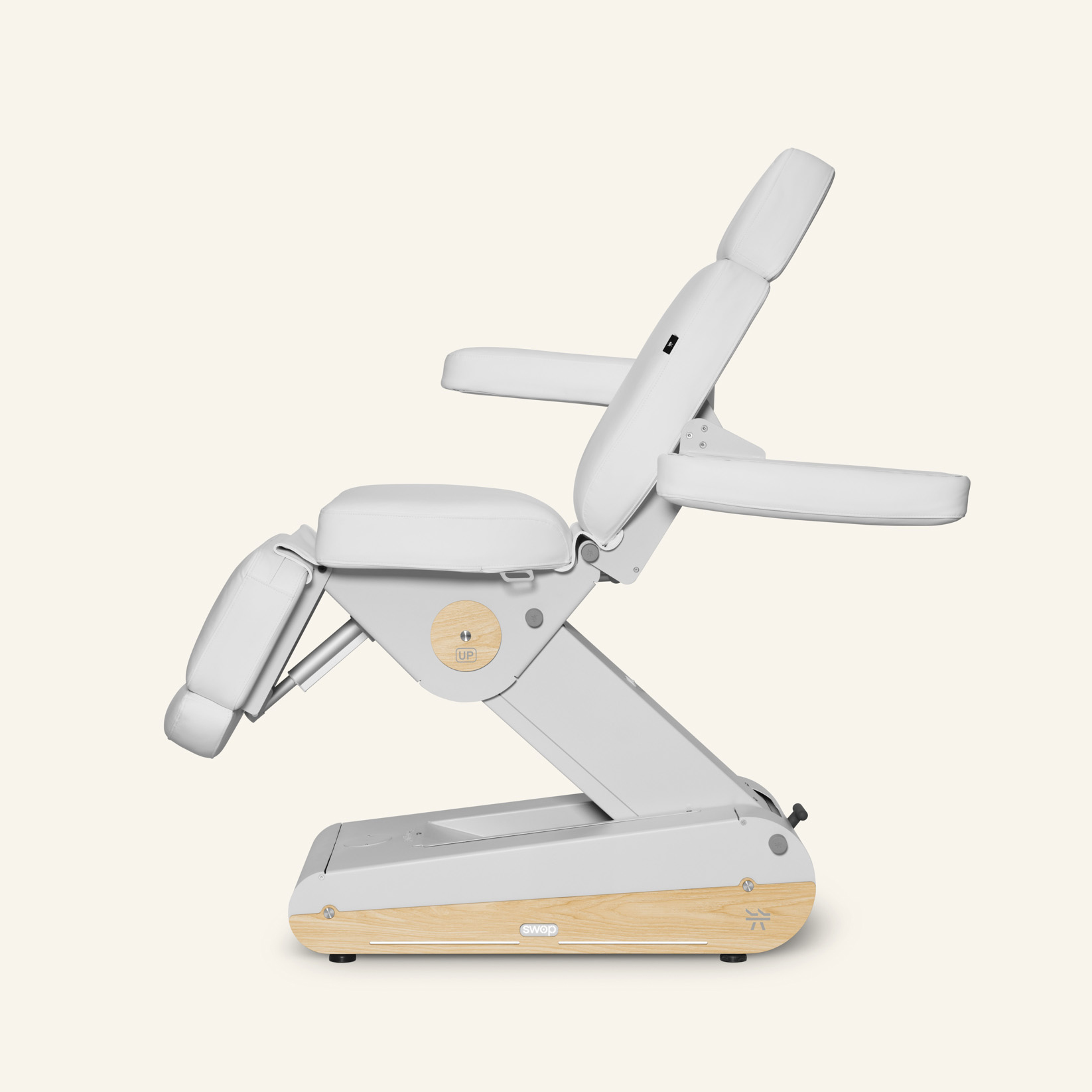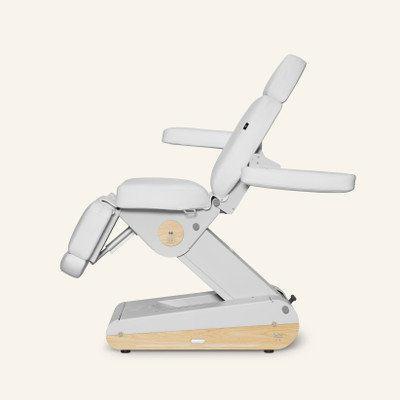 Sähkökäyttöinen hoitotuoli 4 moottorilla ja yhtenäisellä jatkettavalla jalkatuella, suunniteltu tarjoamaan maksimaalinen saavutettavuus ja mukavuus. Käännettävät ja irrotettavat käsinojat varmistavat ergonomisen työskentelyasennon hoitojen aikana. Tarjoaa useita eri asentoja, mukaan lukien sängyn ja zero gravity -asennon, täydelliseen rentoutumiskokemukseen.