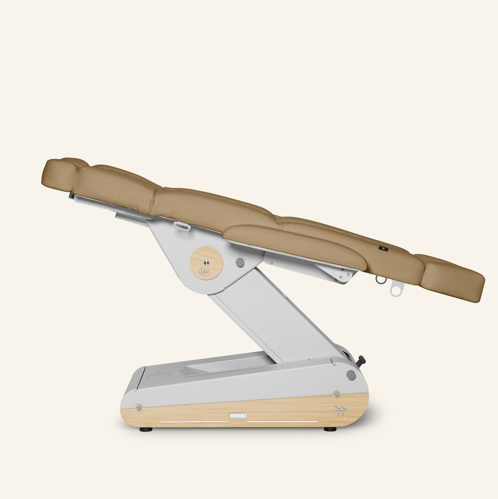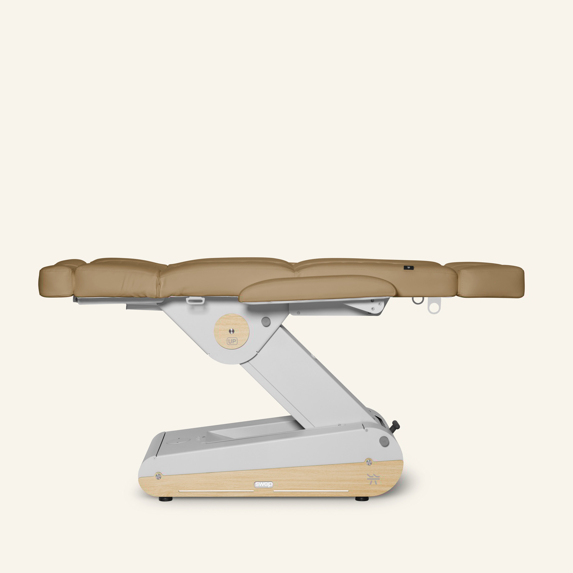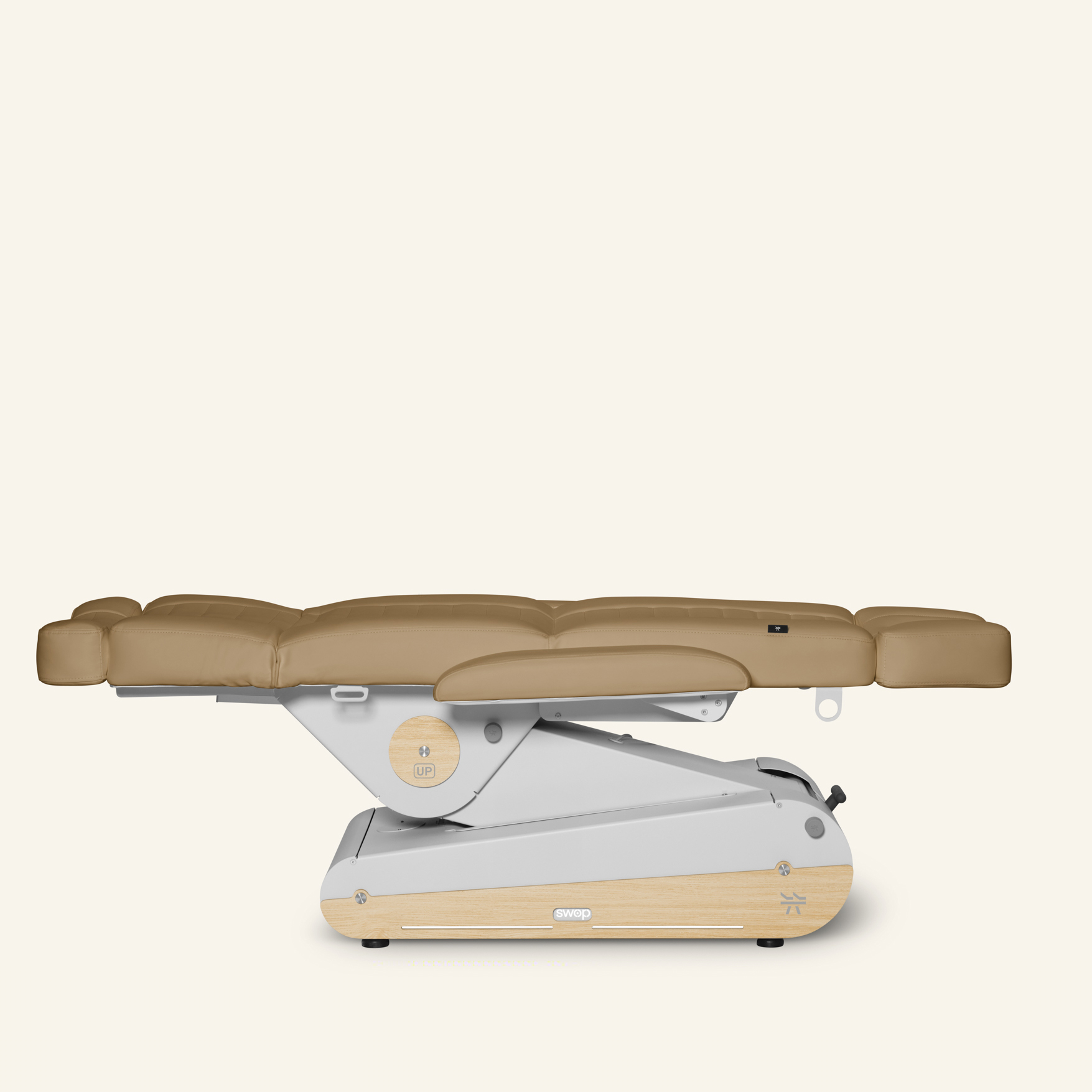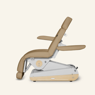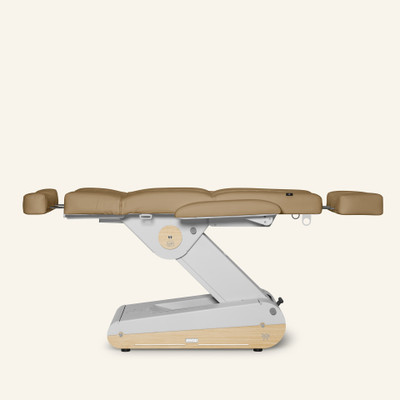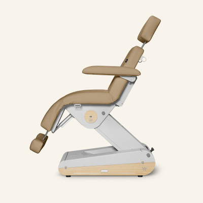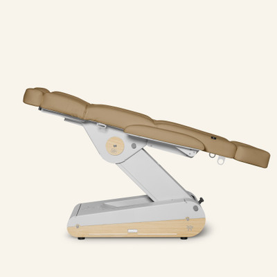 Korkealuokkainen esteettinen hoitotuoli/vuode, jossa on 4 moottoria ja käsiohjain, suunniteltu tarjoamaan ylellinen hyvinvointikokemus. Varustettu käännettävillä ja irrotettavilla käsinojilla, jatkettavalla jalkatuella, kasvoaukolla ergonomisella tyynyllä sekä integroidulla lämmityksellä. Soft Skin -verhoilu ja paksumpi, mukavampi patja ympäröivät asiakkaan täydelliseen rentoutumiseen. Ihanteellinen hoitoihin, joissa vaaditaan tarkkuutta, eleganssia ja maksimaalista mukavuutta.