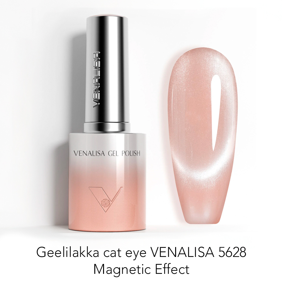 VENALISA Cat Eye -geelilakka 5628 on täydellinen valinta, kun haluat luoda kynsiin kolmiulotteisen ja ylellisen magneettiefektin. Magneetin avulla lakka muodostaa syvän, liikkuvan valon heijastuksen, joka muistuttaa kissansilmää ja tekee lopputuloksesta välittömästi katseenvangitsevan.